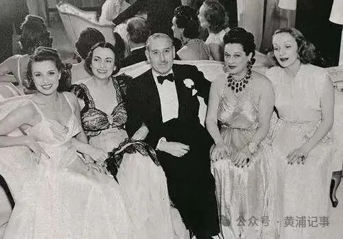 沙逊爵士(中)与好莱坞影星玛琳·黛德丽(右一)参加华懋饭店派对