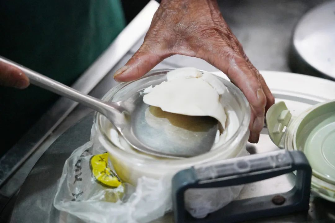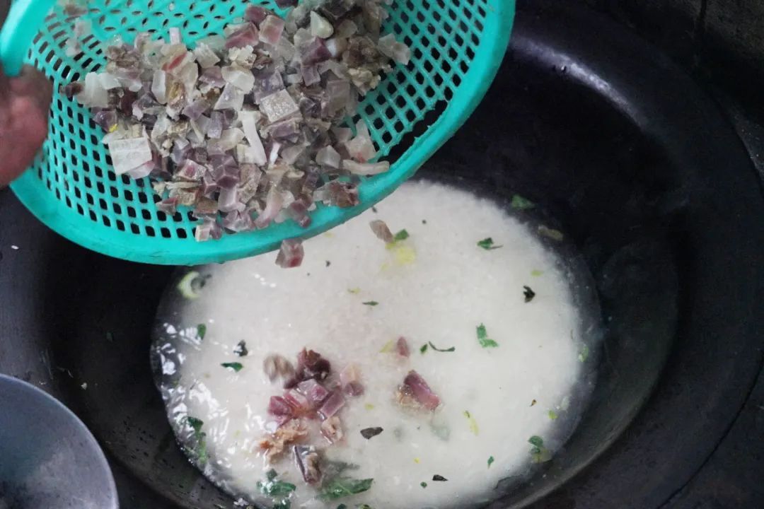 土灶烧出来的饭糍又脆又香,是不少人的“心头好”。最后出锅时,喜欢吃油一点的,在盛起来之前可以往上面浇一层猪油,烧好的咸酸饭就看上去亮晶晶,卖相好。