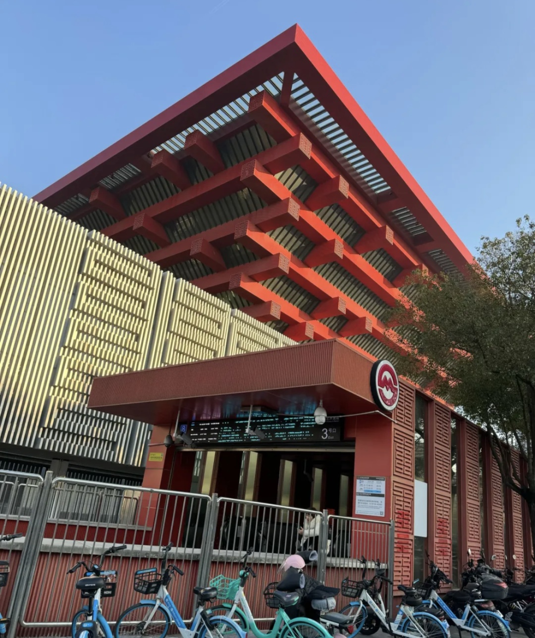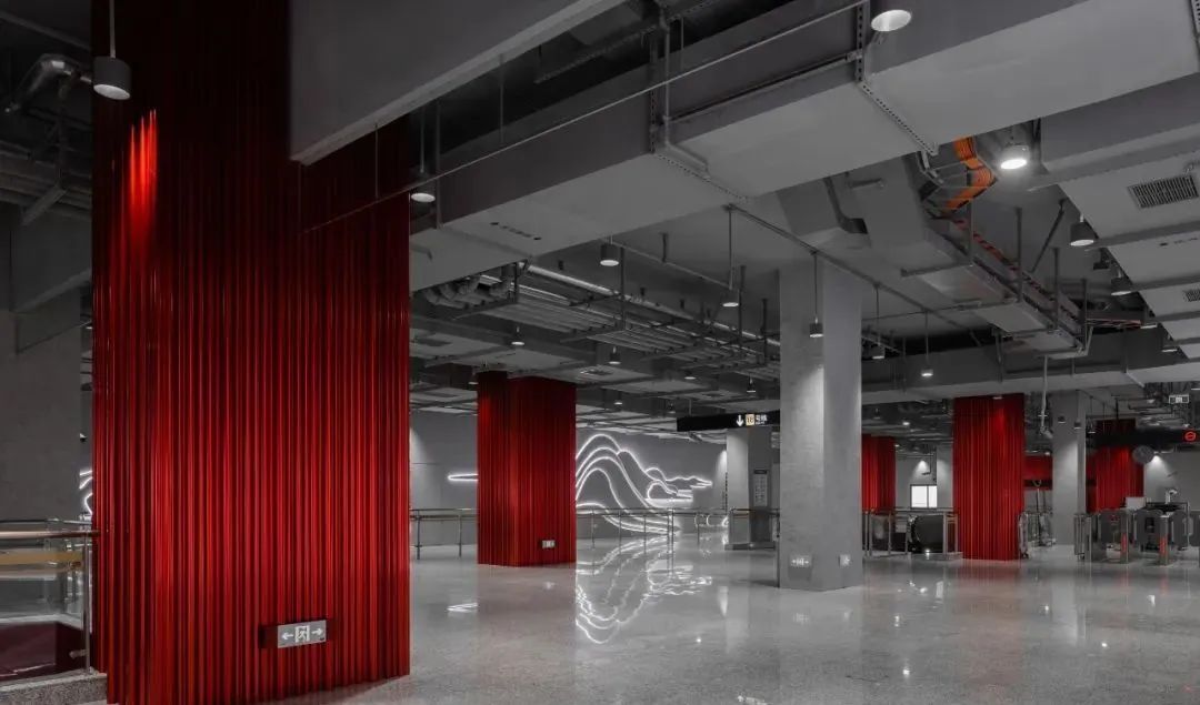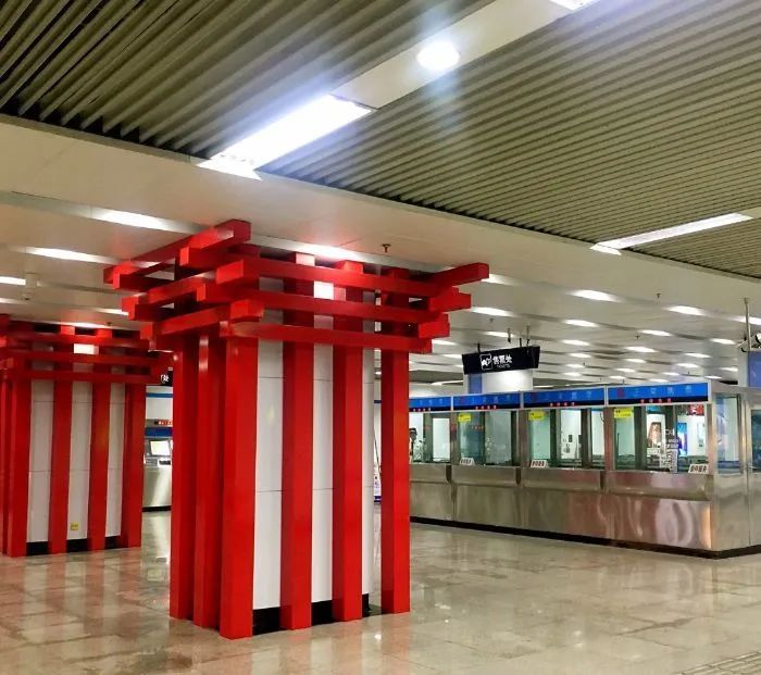 走进中华艺术宫站,首先映入眼帘的就是这独具特色的大红色立柱,完美体现出了中国风的元素。