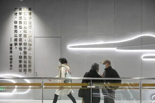 复旦大学站站内山水画融入设计,人文气息满满!深入站厅,随处可见与复旦相关的元素。比如“卿云烂兮,糺缦缦兮。日月光华,旦复旦兮。”这是复旦大学的校名出处。