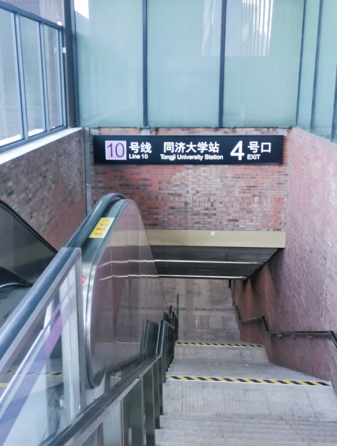同济大学站风格大气,出入口贴有红砖装饰,预示同济百年历史;车站一角有国画大师汪观清的作品《梦里徽州》,巧妙的天窗设计则把阳光从同济校园直接引入车站。