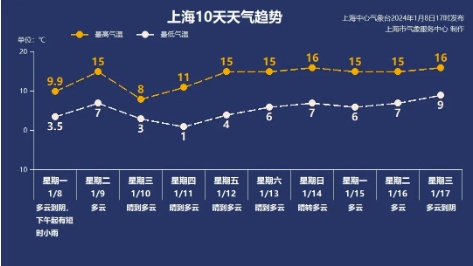 冷空气影响时间不长,之后上海进入升温通道,最低气温保持在4℃以上,最高气温在15~16℃,加上阳光“在线”,白天大部分时间体感还是暖意融融的。