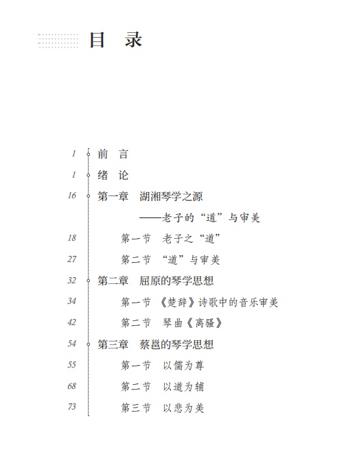 近日,学林出版社推出的《湖湘琴学思想的发展历程与当代价值研究》,即沿着先秦——两汉——魏晋——隋唐——宋元——明清的纵向线索,以中国传统哲学、古琴音乐美学为理论依据,对老子、屈原、蔡邕、朱熹和杨宗稷等代表性湖湘琴人的琴学著作和相关文献进行了梳理和研究,通过分析探讨他们的琴学思想,建构湖湘琴乐审美理念发展进行的逻辑体系。在作者张娣看来,各位琴人的琴学思想最终都走向了中国传统文化中“由技入道”的审美范式。因此,从琴音、琴象和琴意三个层面探讨古琴艺术的审美特征,并挖掘其当代价值,是湖湘琴学思想研究的实践意义所在。