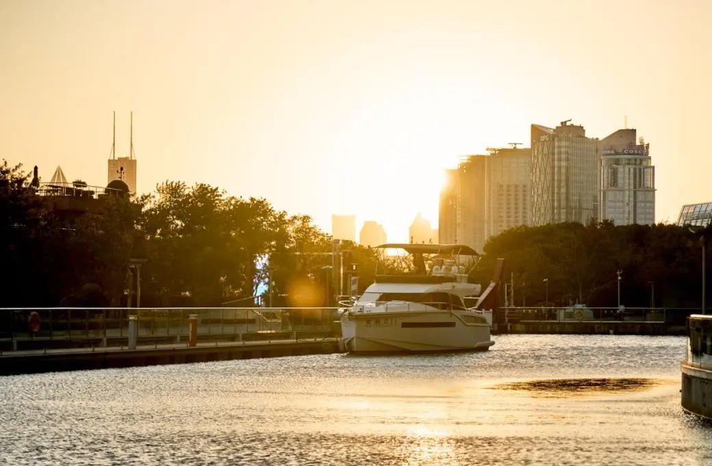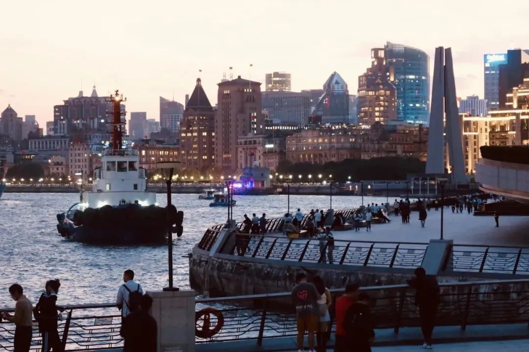 时间渐晚,来到北外滩国客中心,这里是在滨江边散步的最佳选择之一,可以边散步边感受太阳落下后的落日余晖,也可以直面看见三件套和外滩的万国建筑群。