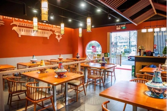 步入闵行区虹桥镇合川利邻荟的新梅居分店,宛如踏入一座火锅博物馆,景泰蓝炉子散发着中国传统手艺的魅力,颜值极高。