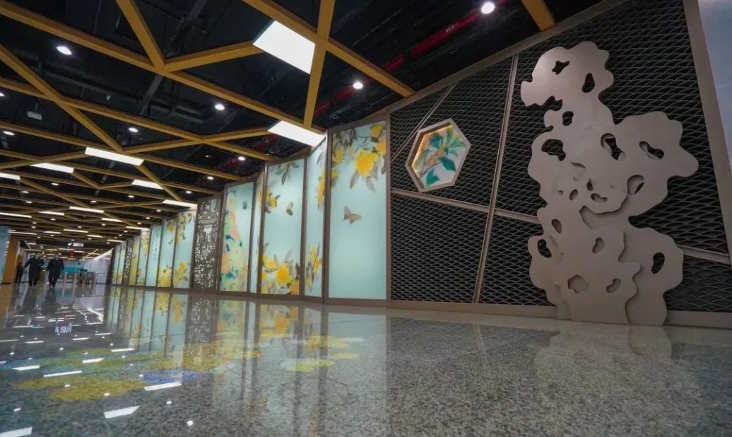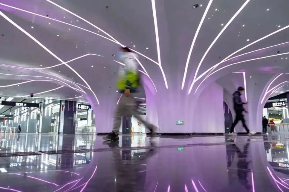 轨道交通15号线吴中路站,巧妙地展现出一幅富有科技感的城市画卷。