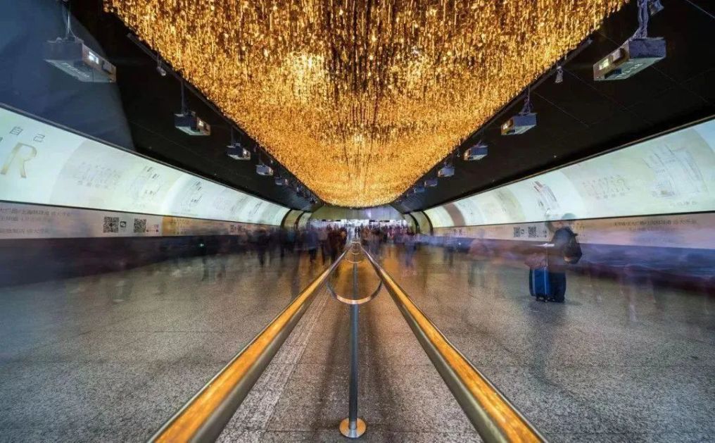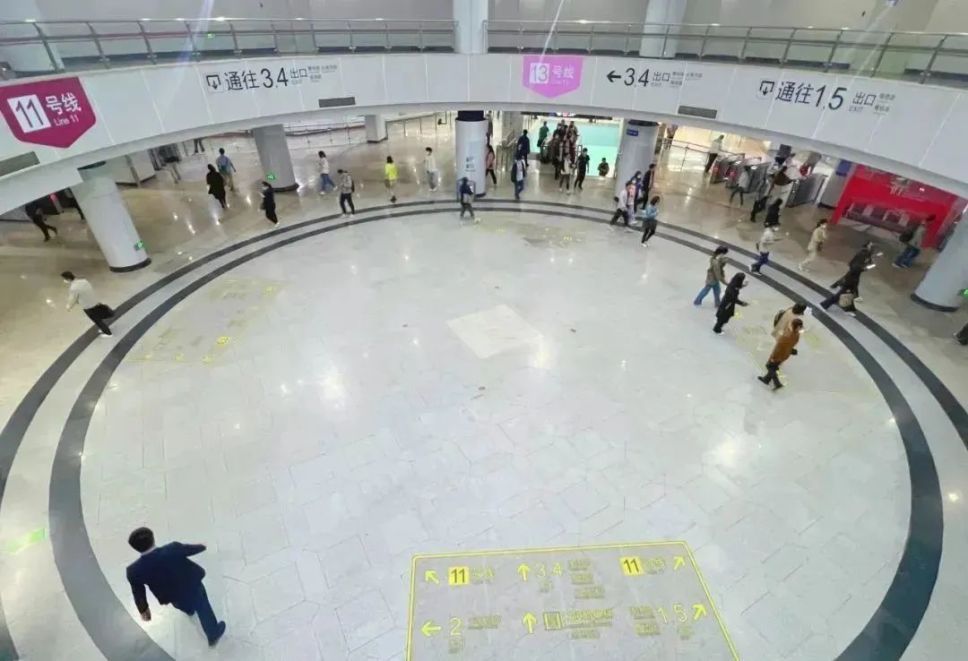 徐家汇站是轨道交通1、9、11号线的换乘点,身边是各式人群来来往往,再加上彩色灯光带和超长的互动大屏幕,十分酷炫。徐家汇站巧妙利用建筑对比呈现时空穿越;利用既有空间改造成车站,首创车站设计与城市更新契合,打造建筑结构与人文共生的场景空间。