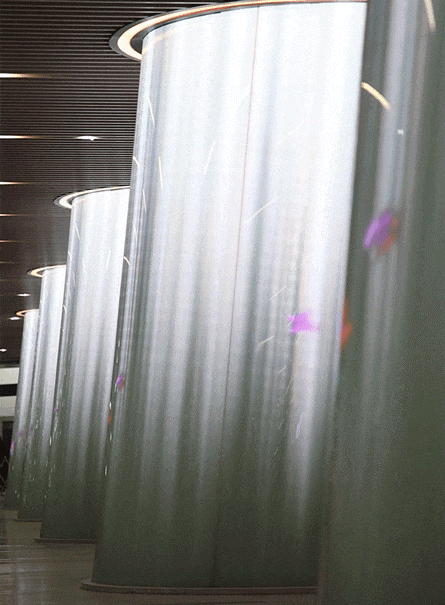 地铁14号线昌邑路站,由于路径上还有江浦路过江隧道、东西通道、地铁18号线等,为此,建设者用了四根直径长宽超过两米的钢筋混凝土柱子作为站厅的支撑。为了整体美观性,设计者构想出了“火树银花”的方案。于是,立柱变成了“树”,五彩的光从“树”中漫射出去,颇有“暗香素蕊,横枝疏影”的意境,让人见了不由得为之惊叹。