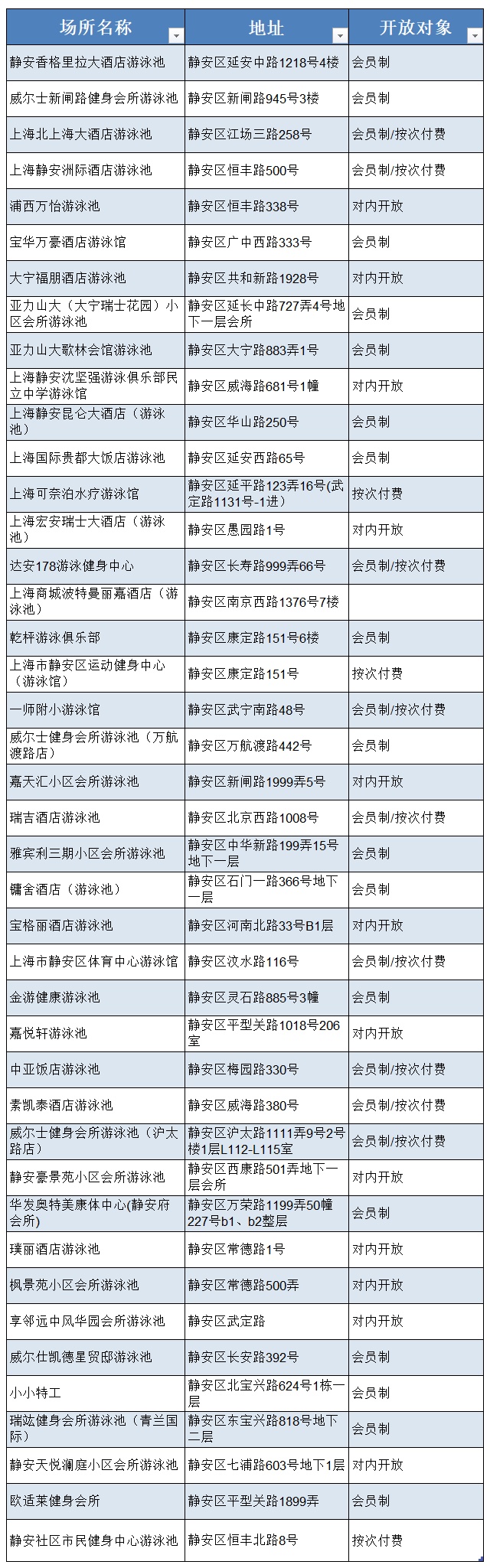 注:所有游泳项目均需提前一天在“静安体育综合服务平台”进行预订,夏季开放时间将另行通知。