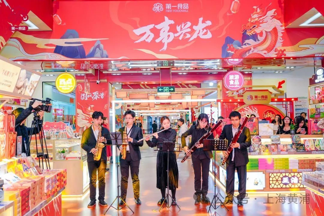 随着2024农历新年的脚步日益临近,乘着双休日天气良好,不少市民外出购物采办年货。1月12日下午,第一食品2024跨年迎新购物暨年货节活动在南京路步行街上的第一食品旗舰店拉开帷幕,交响乐团也首次开进商场,为市民游客带来了一场别具特色的视听盛宴,为老字号商场注入了更多文化气息。