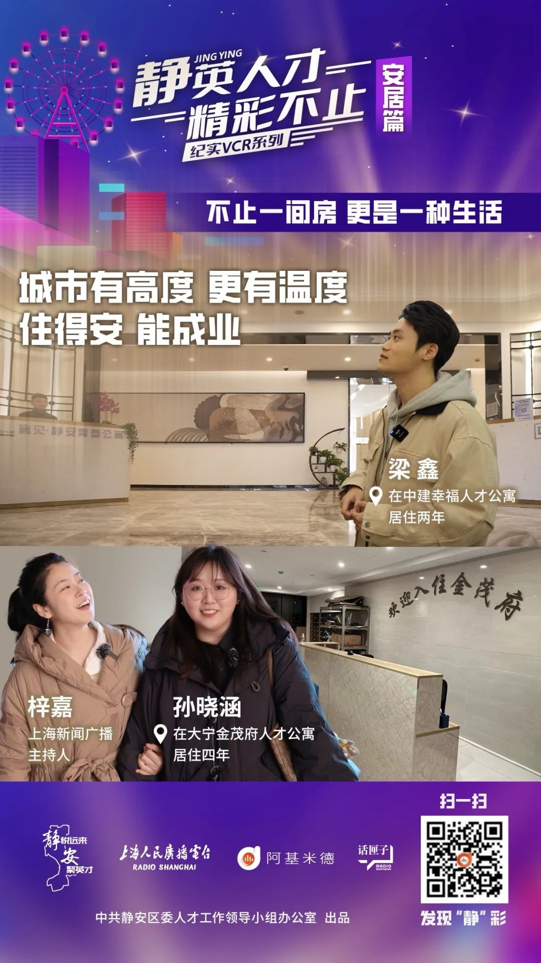 这是静安人才的温馨港湾,本期《静英人才 精彩不止》安居篇,跟着主持人梓嘉的镜头,打卡体验工作居住在静安的一天,“静”英人才们怀揣着最初的梦想,到静安,在静安,留静安。
