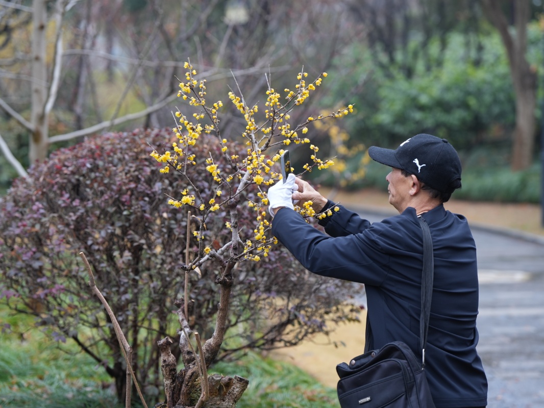 申城近日连续降温,真如公园内却繁花似锦,蜡梅盛开。1月19日上午,真如公园蜡梅展如期开展,为寒冷冬季增添了一抹温暖,在落在花蕊上的雨滴“衬托”下,蜡梅显得更加娇嫩,散发出别样的韵味。