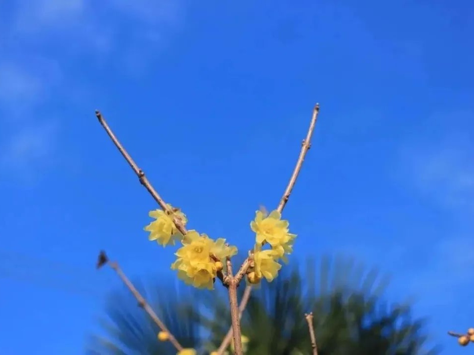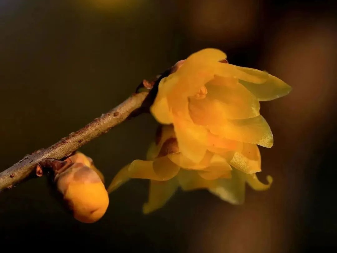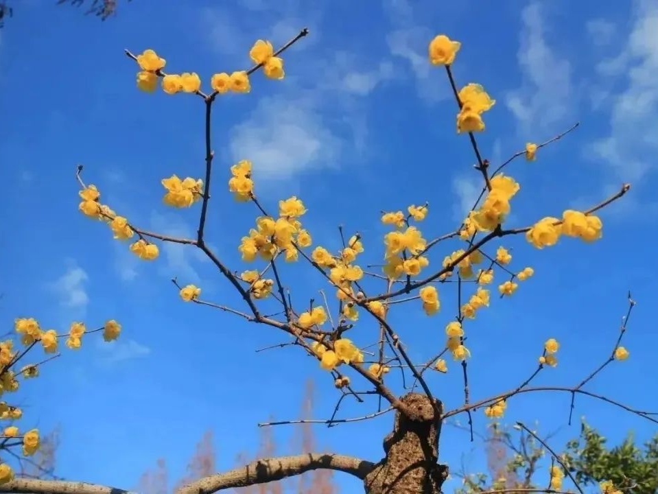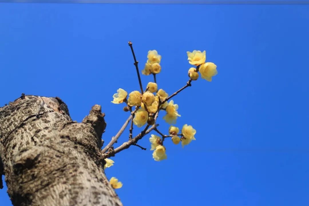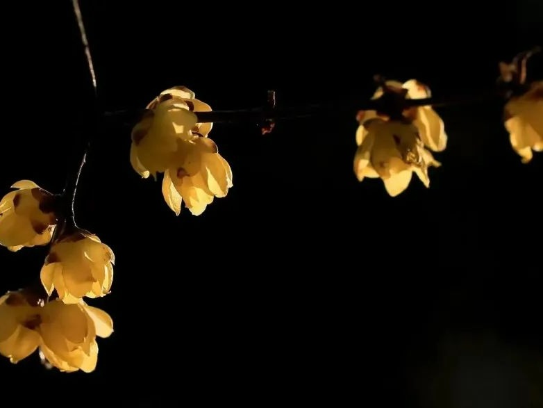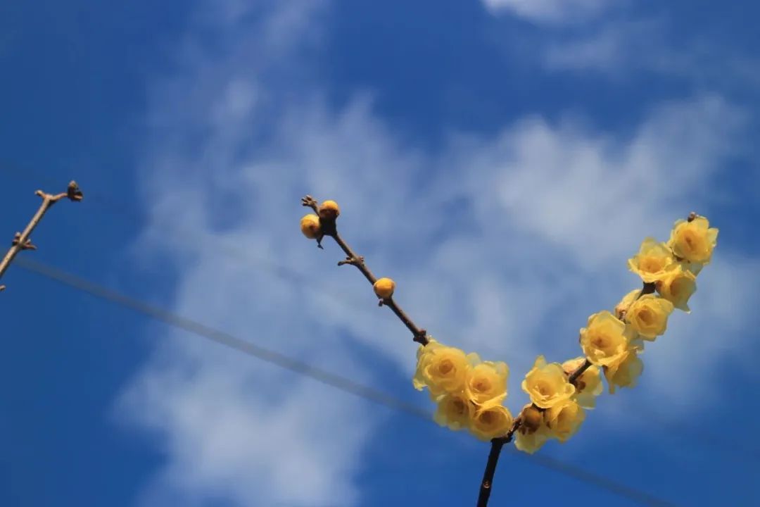 寒冬腊月,黄灿灿的蜡梅花