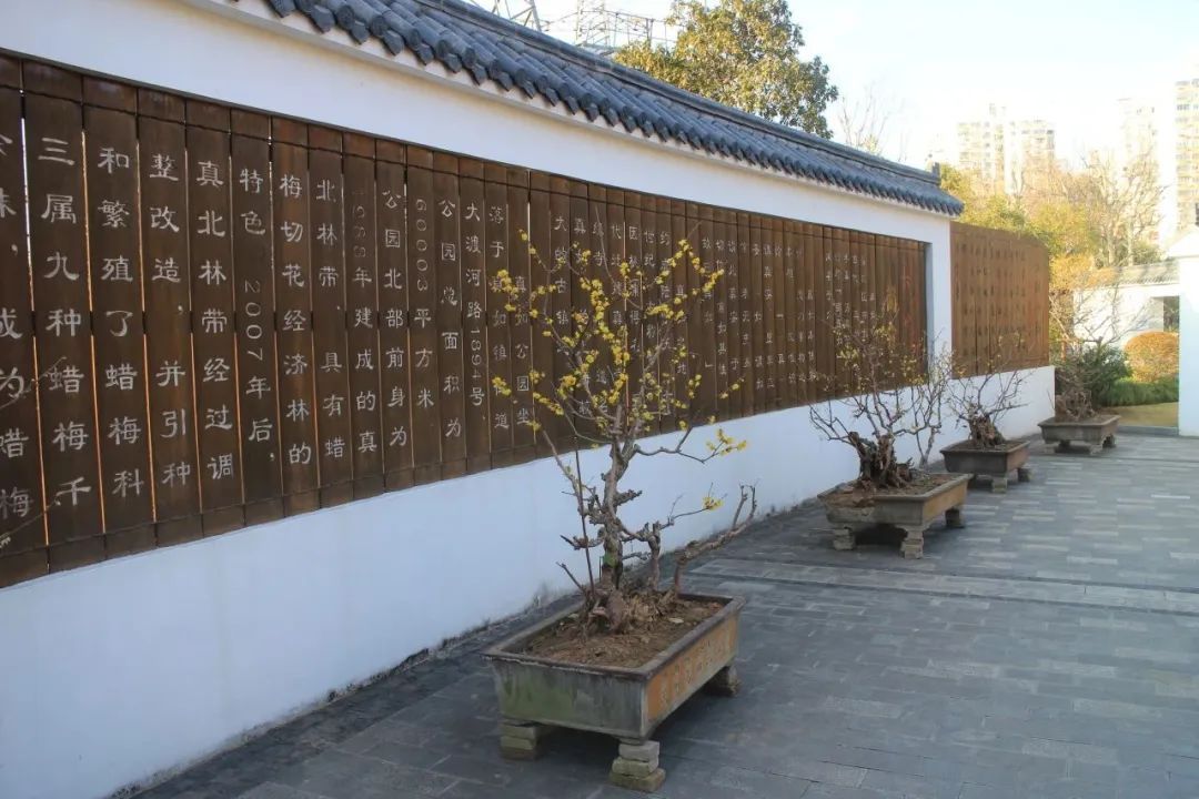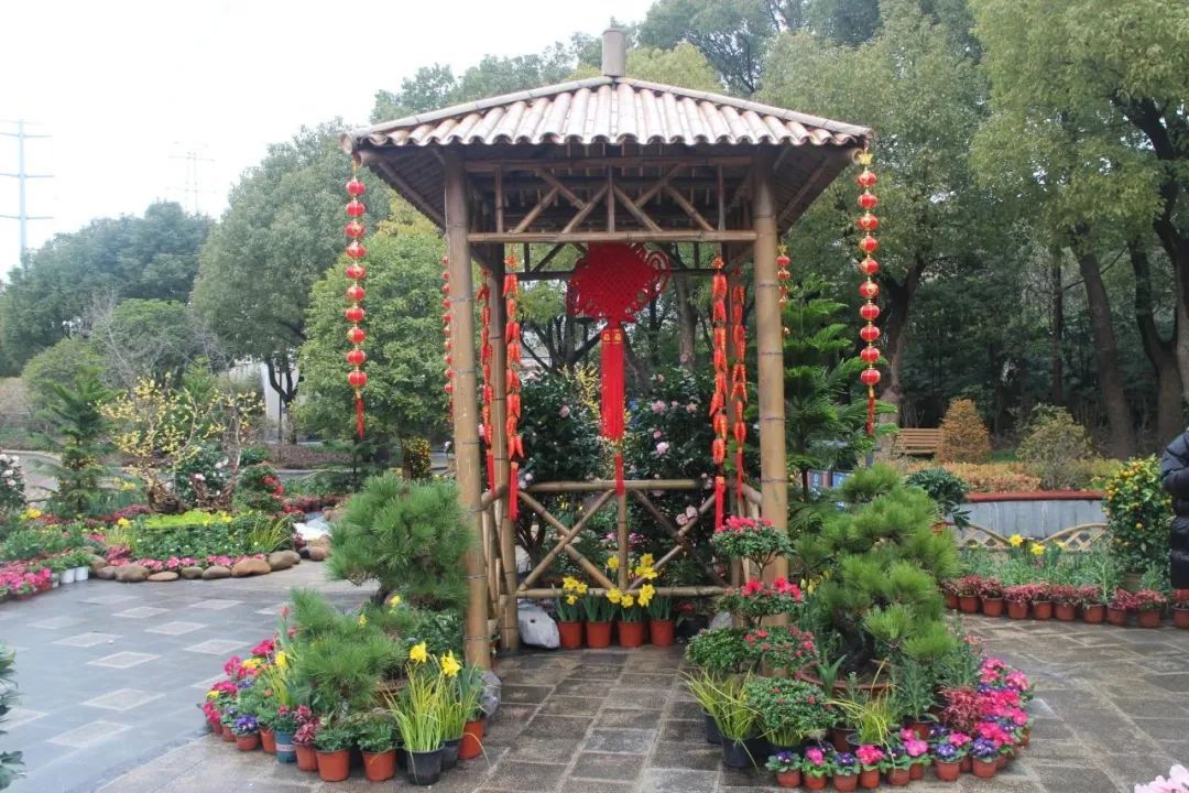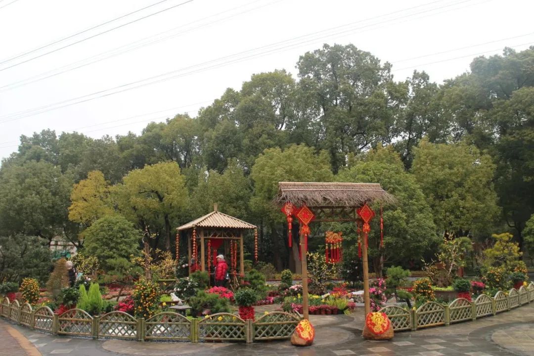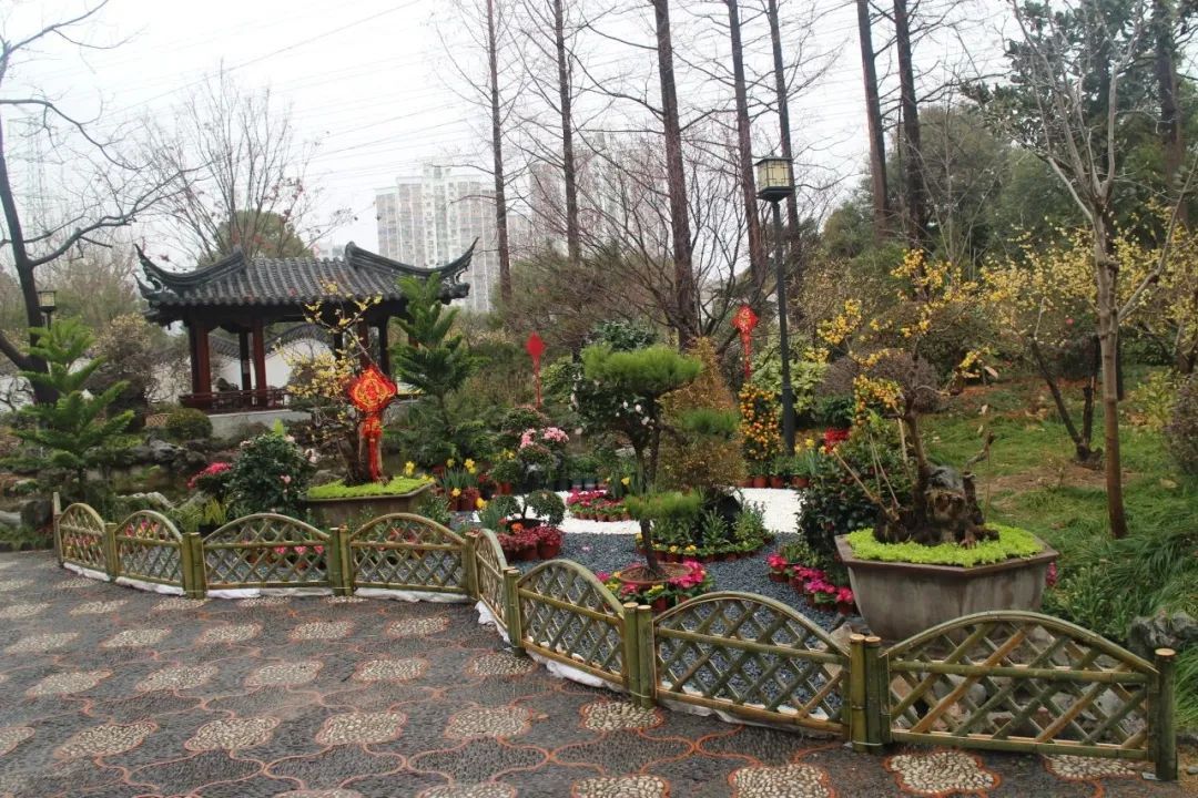 凭借原有的地形,用竹篱、竹庭阁、竹门楼构建出了一幅怡然自得的田园小院,辅以由郁金香、报春花、造型黑松等多种植物组成的23组造型蜡梅盆景,让游客在喧嚣的城市中感受到安静、朴实的田园风情。