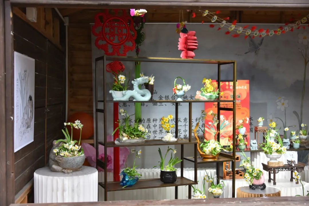 水仙雕刻展区主要展示由市民以及雕刻大师雕刻的水仙盆景,为民间更好地搭建一个交流平台,让人们能够相互学习交流水仙雕刻经验与养护技巧,让更多更高水平的水仙造型技艺走向民间。