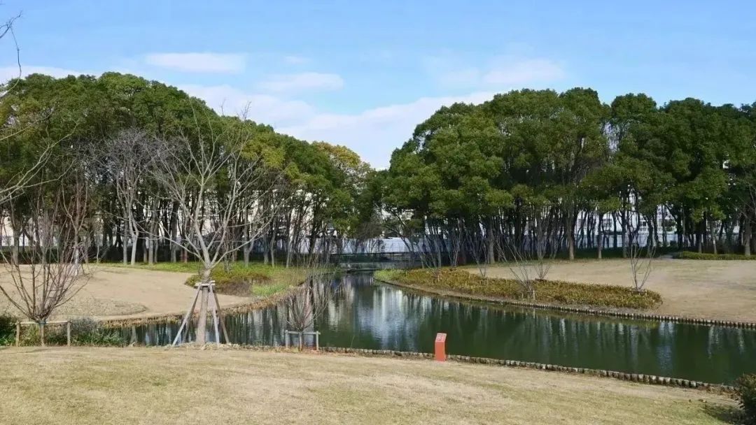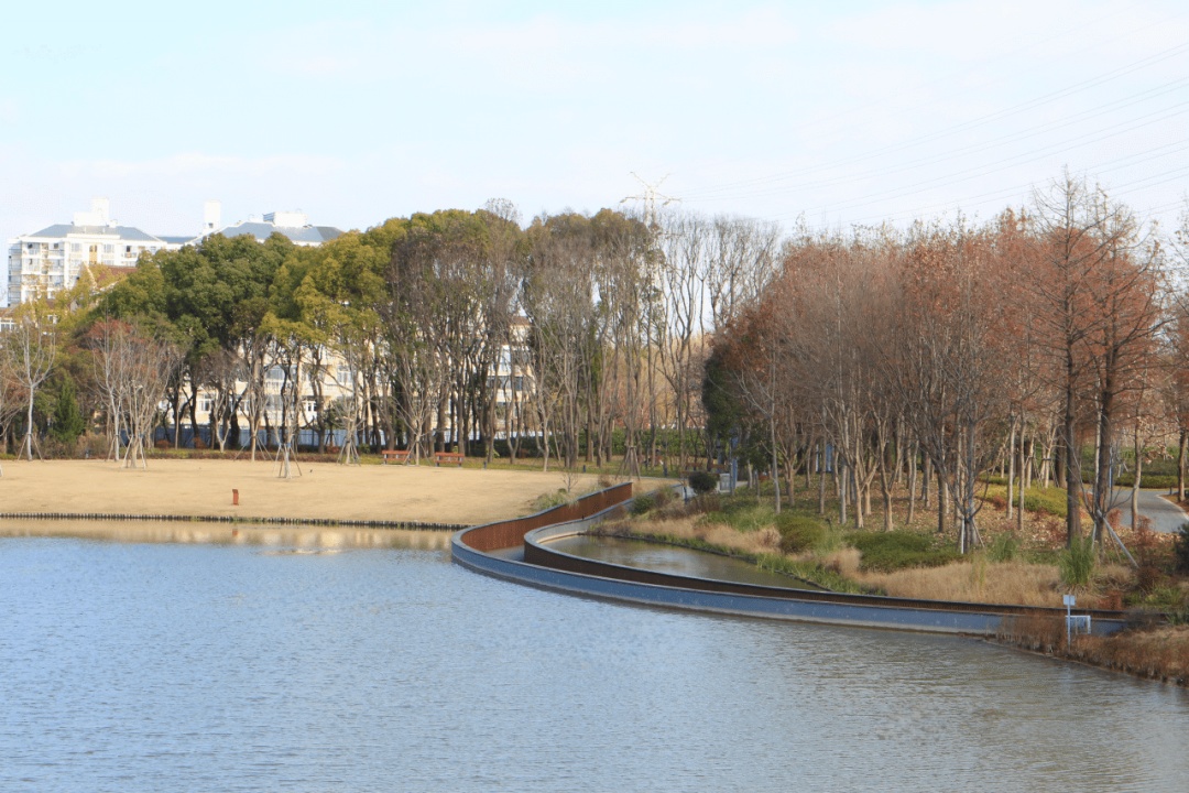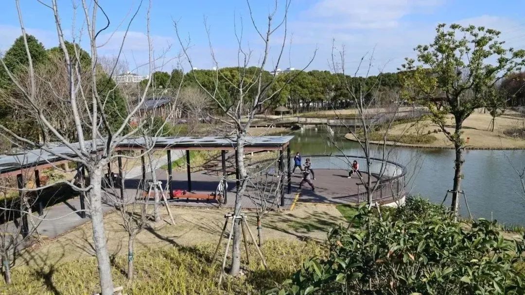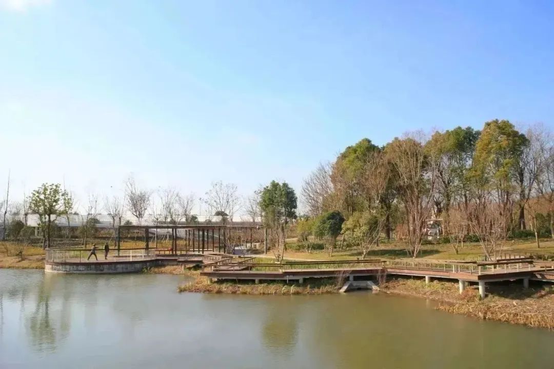 公园以桃花为主题特色,临水而植各类品种的桃花,静待花开时红霞萦绕,倒影成趣。湖面还常见白鹭、小䴙䴘水嬉戏觅食。