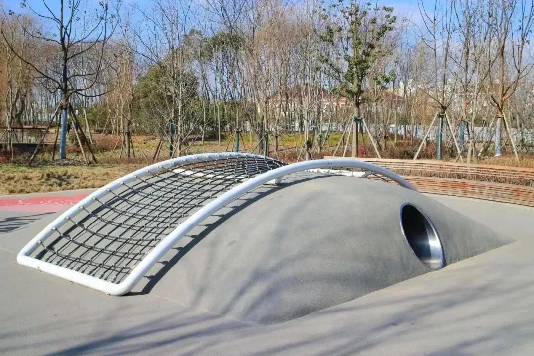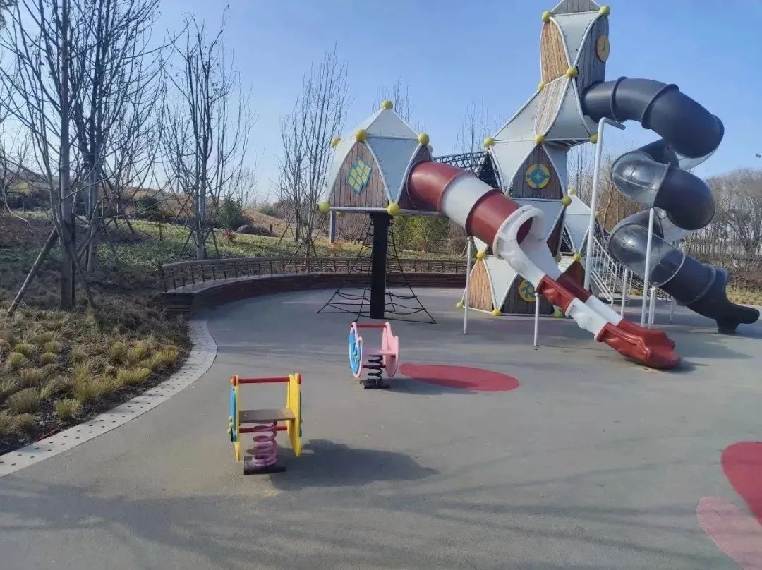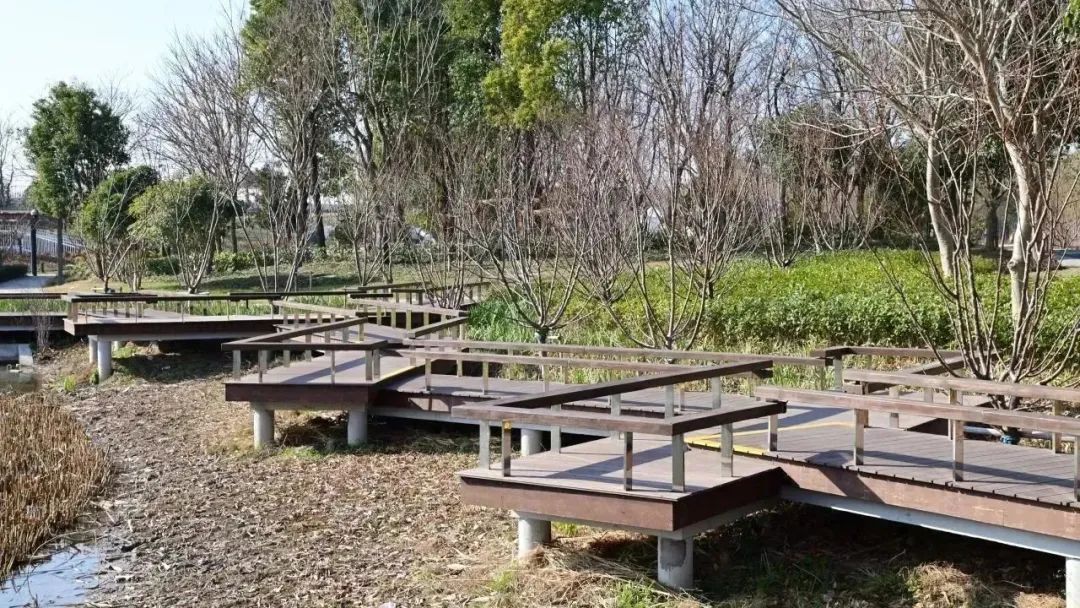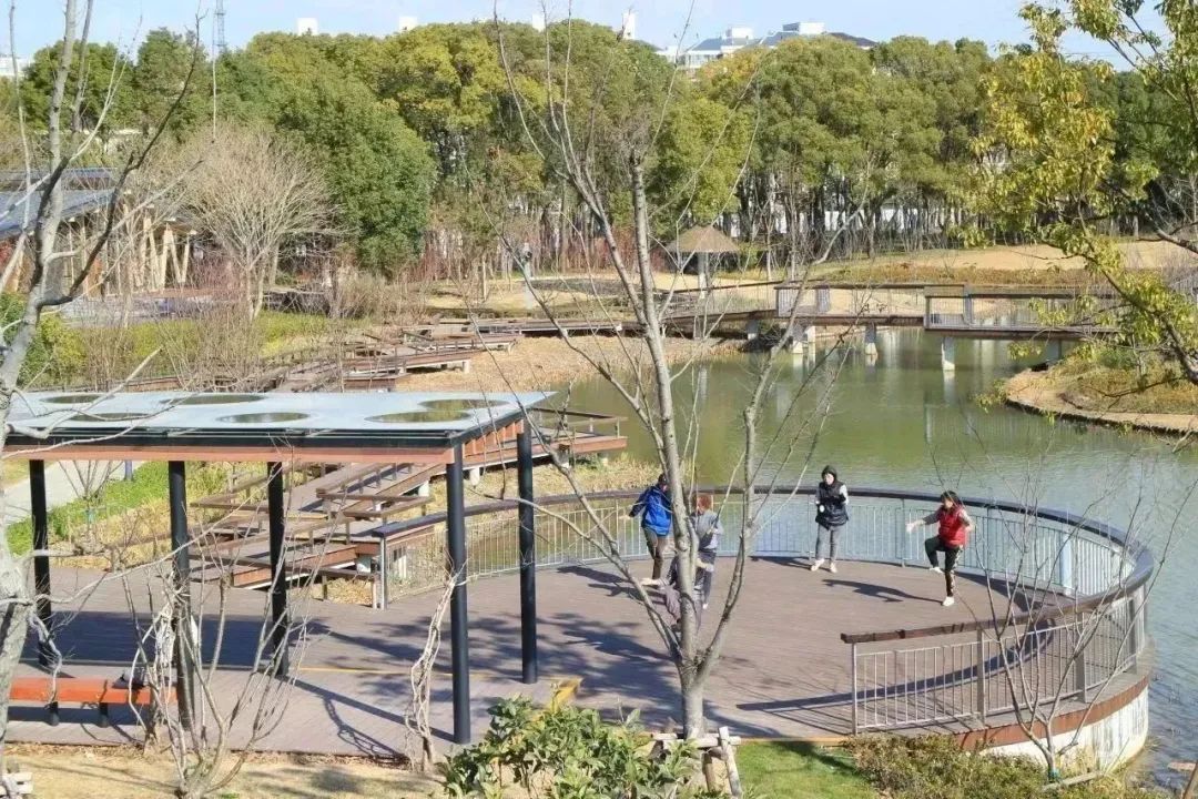 公园设置了水下栈道、水面栈道和浮桥、空中景观栈桥,为游客提供了立体多元的观景位置,沙坑等儿童游乐设施也成为孩子们热衷的游戏场所。