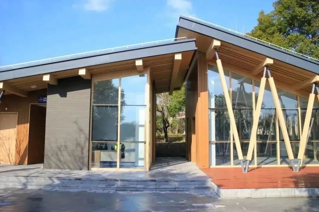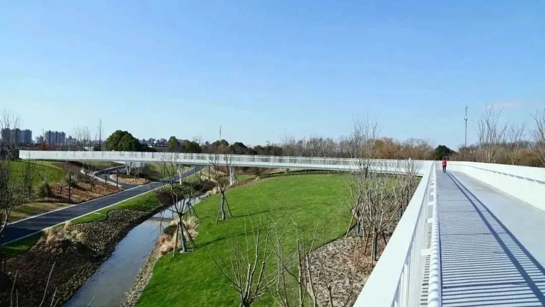 环城绿道驿站配套服务建筑临湖布局,为游客提供更舒心的休憩服务,形成水绿交融、景观突出、服务齐全的普陀区环城生态公园带建设样板。
