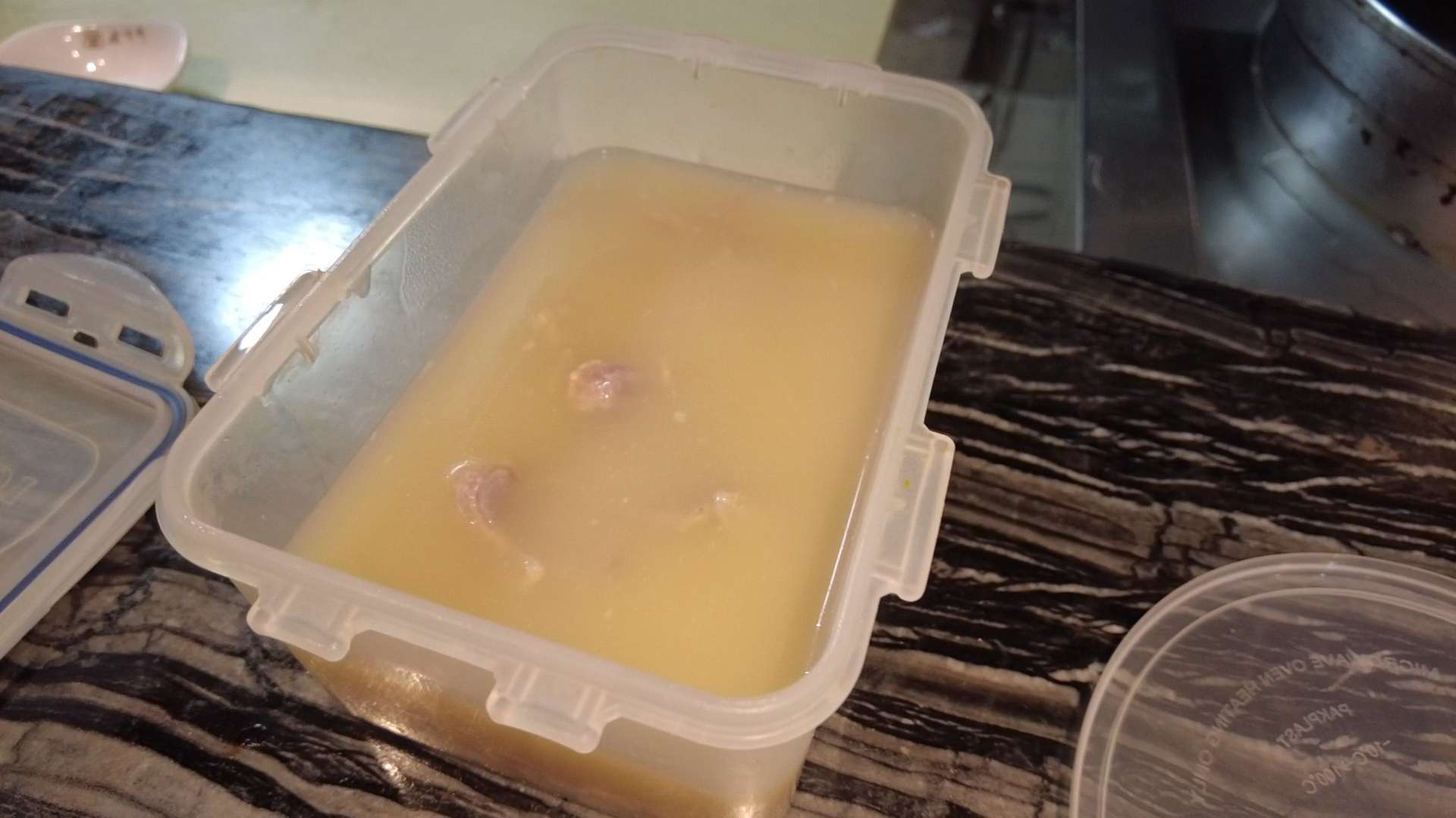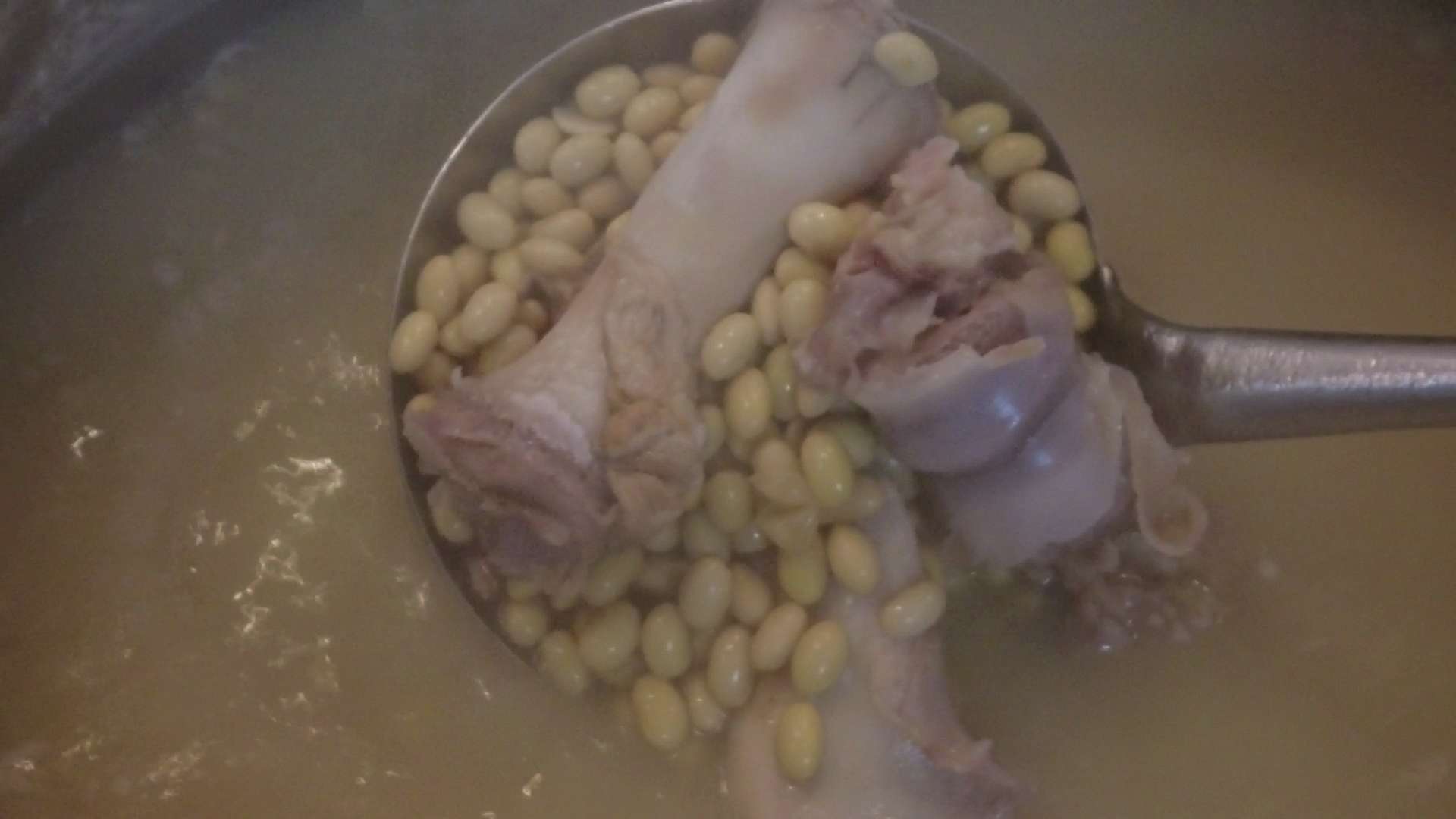而黄豆汤,蹄髈削去肉去做肴肉后的骨头,加上黄豆,需要早上六点开炉,起码炖了4小时,等煮烂了,味道就进去,氤氲弥漫,恰到好处。