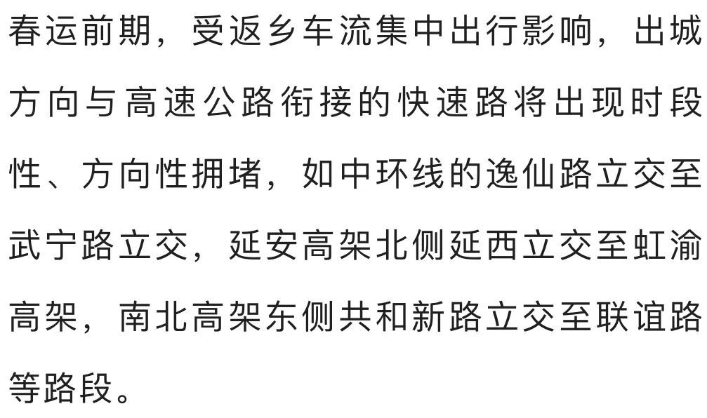 建议公众根据自身情况,灵活安排出行路线和时间,错峰出行。无论出行前还是出行途中,可以通过路况动态情报板获取最新路况,合理规划出行线路和时段。
