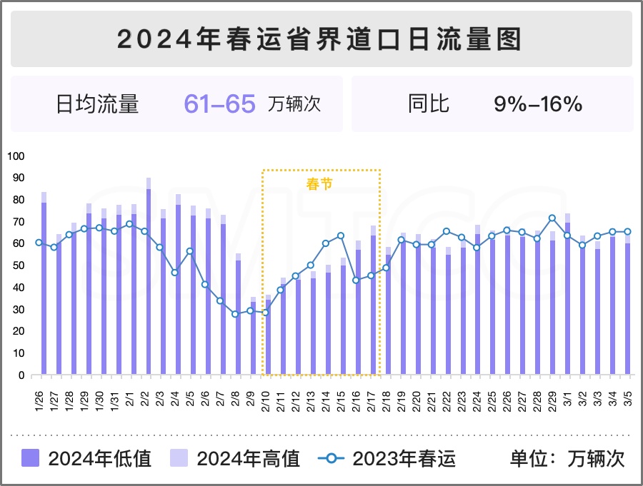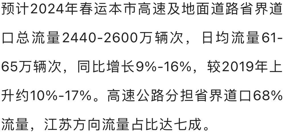 市交通委指挥中心介绍,2024年春运从1月26日开始至3月5日共40天,其中春节小客车免费通行共计9天,免费时间从2月9日(除夕) 0点至2月17日(正月初八)24点。