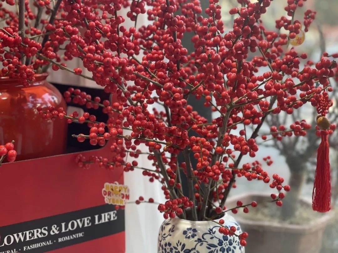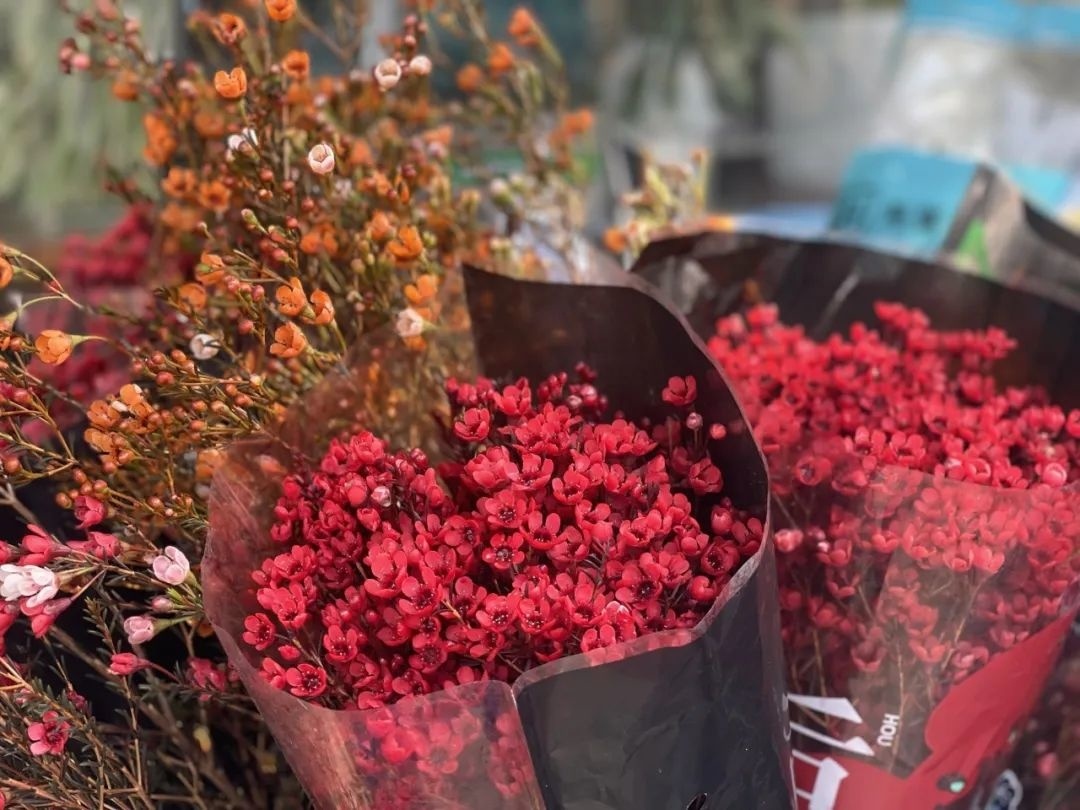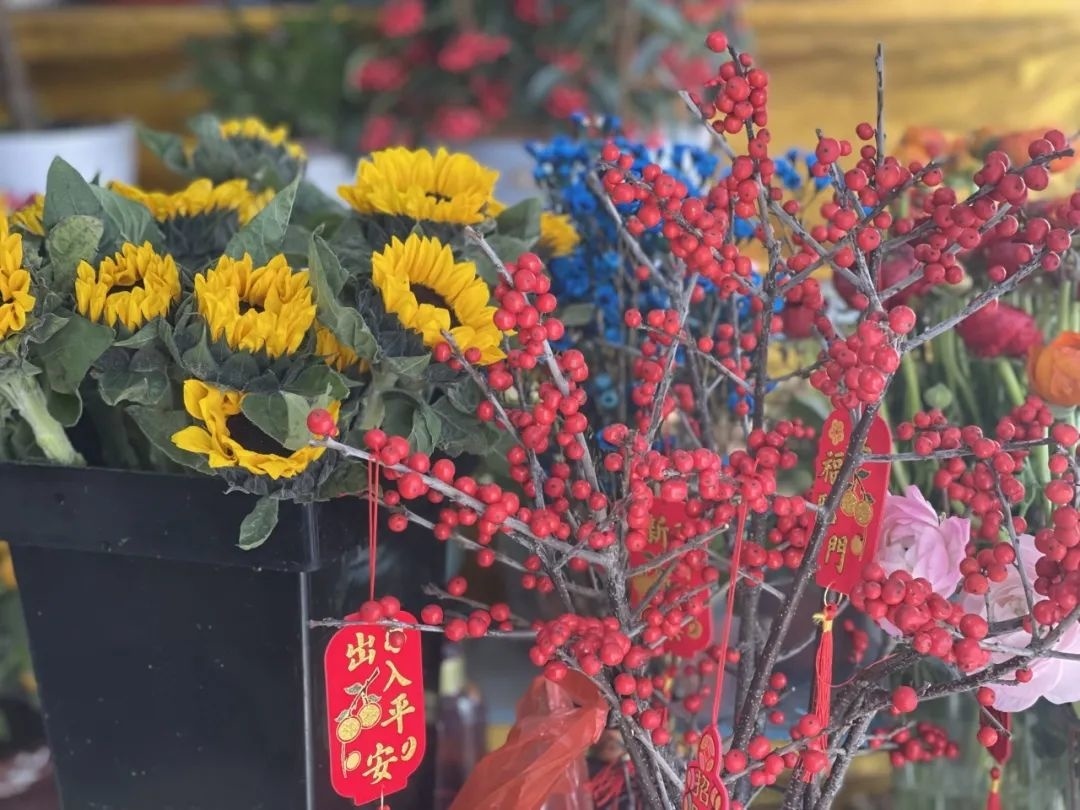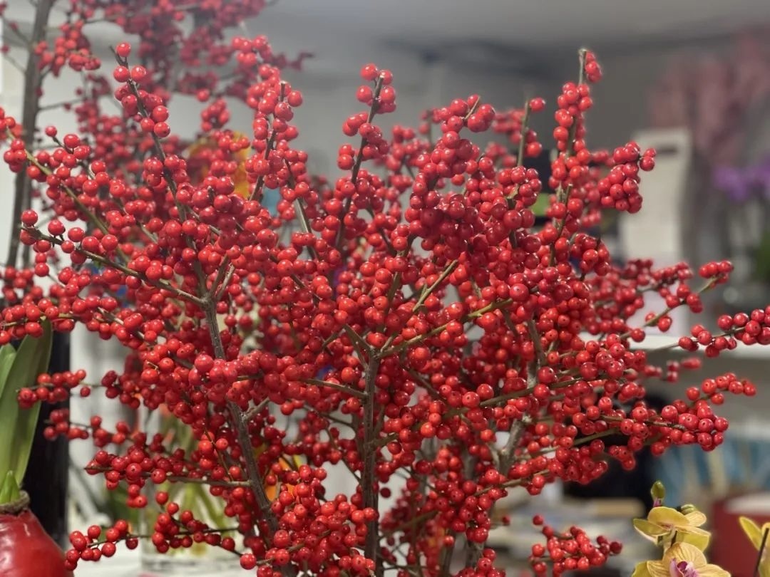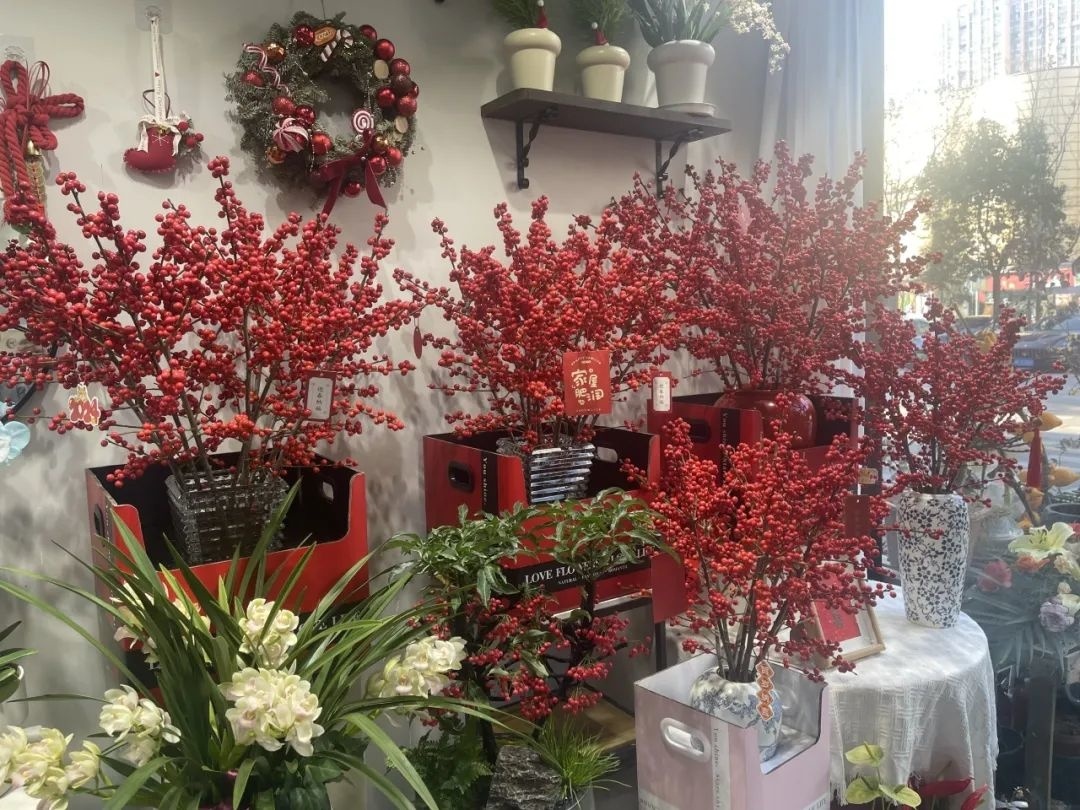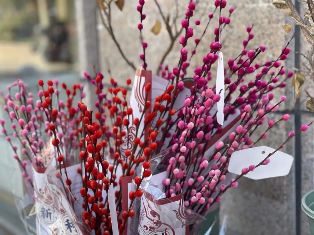 据店主介绍,“这种喜庆的颜色都很受欢迎,不仅过年可以摆,也适合乔迁等喜事。我们店内还有银柳,是老牌年宵花,寓意年年有银子留下来,老人都很喜欢,我们的银柳38元一份。”