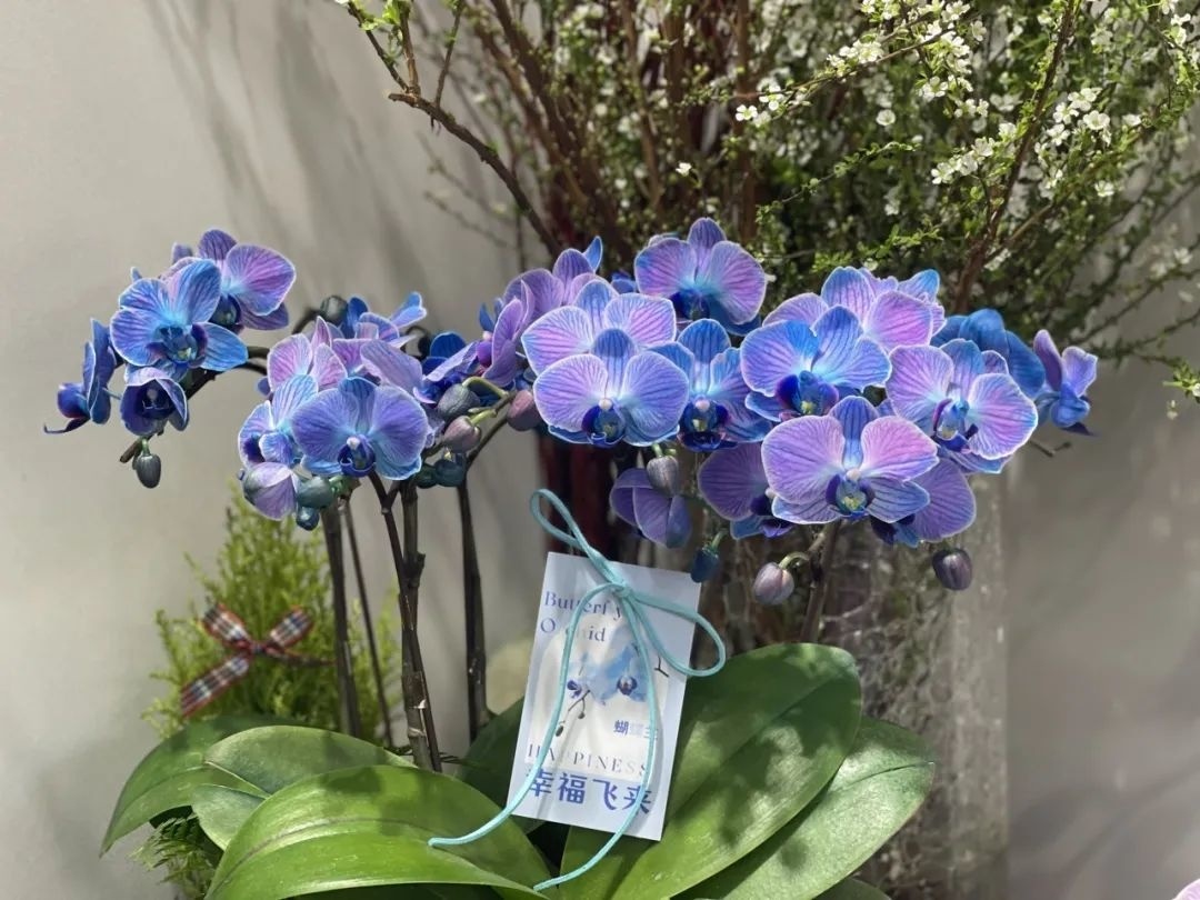 据介绍,蝴蝶兰寓意吉祥顺遂,摆在家里美观喜庆,花期长达两三个月。老年人偏爱传统紫红蝴蝶兰,年轻人则爱买粉色、蓝色等品种。
