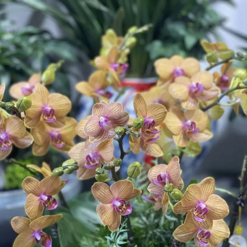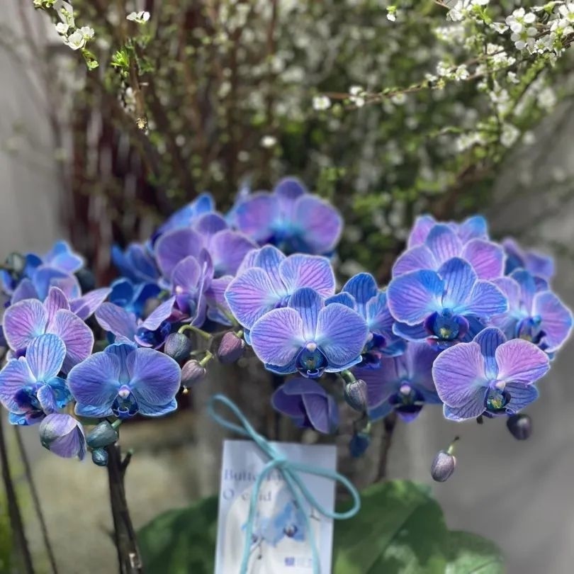 蝴蝶兰寓意高洁、清雅、幸福美满。花色多样,花朵有大有小,花期可长达二三个月。蝴蝶兰浇水遵循不干不浇的原则,切勿往花朵上喷水。