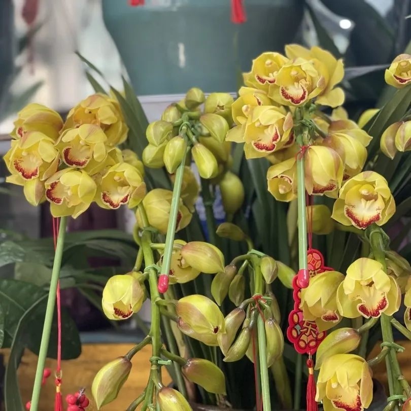 大花蕙兰寓意高贵雍容、丰盛祥和。喜欢温暖的生长环境,冬季可置于温室光照处,在日常养护过程中需注意少洒水,常喷水,浇水过多易导致烂根。
