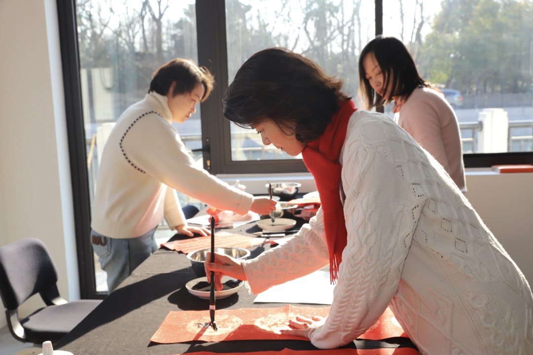 现场,金山区侨界人士和张堰镇劳模还开展了写“福”、写春联活动,邀请书画家亲自教学,寄托新春祝福。来自巴西的华人林周恩一口气写了好几个“福”字,“中国几千年文化中对‘福’字寄托了很多情感,代表着健康、快乐。我希望通过这个活动把这个充满美好的‘福’字带到巴西,带到全世界”。张堰镇劳模高玉英向大家展示了一副自己亲手书写的对联——“春归大地人间暖 福降神州喜盈门”,她表示:“我特别喜欢这副对联,它寄托了人们对新年的美好祝福。而且通过此次活动,我对书法、对传统文化也有了进一步认识,希望以后能有更多机会参与到这类活动中。”
