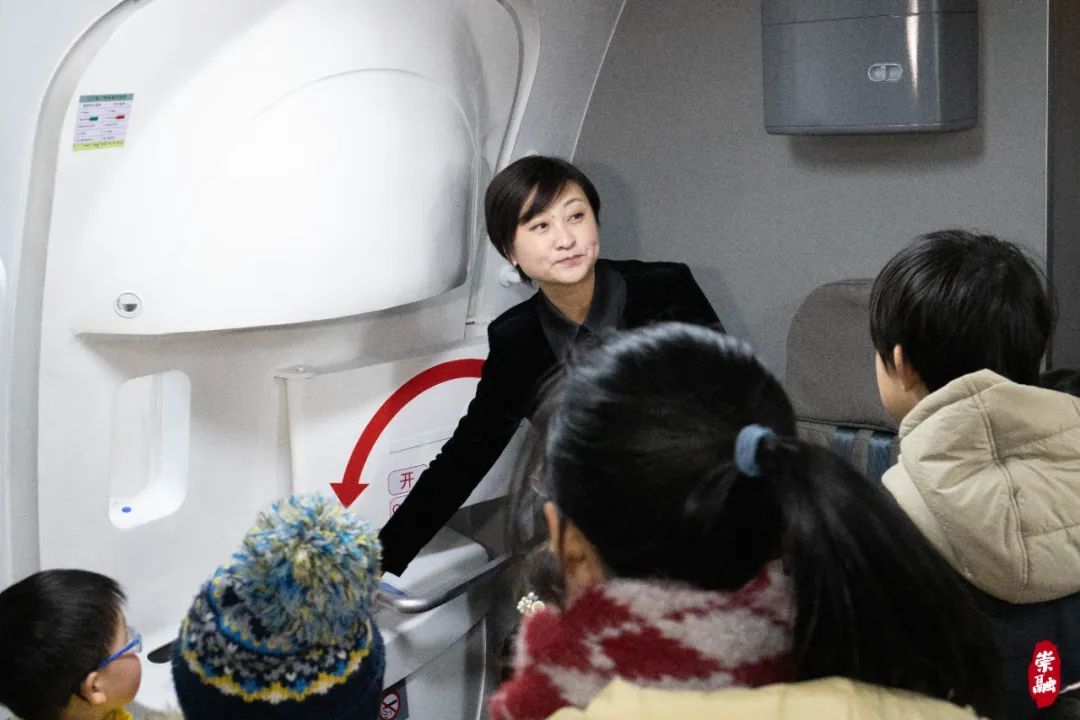 在中樱航空主题互动空间,有一个1:1真实还原的双通道宽体客机模拟舱,为游客提供“登机”体验。当天参加活动的亲子家庭,在完成模拟机场安检后,就迫不及待地登上了“大飞机”。