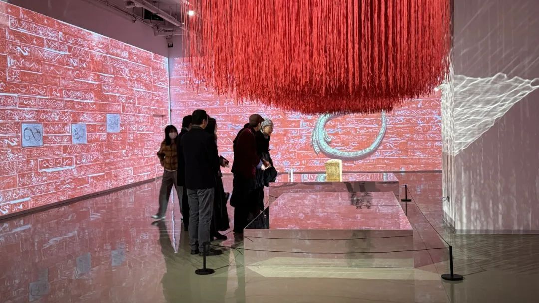 作为此次展览的联合主办方,嘉定明止堂中国字砖馆还借助AI、AR技术,让更多古砖穿越千年时空、以拓片形式来到现场。“一进入展览就被古砖和四周的投影装置所吸引,这上面的图案跨越了千年,将龙的形象栩栩如生地呈现到我的眼前,这种现代和古代的碰撞,效果非常震撼!”观众严先生说。