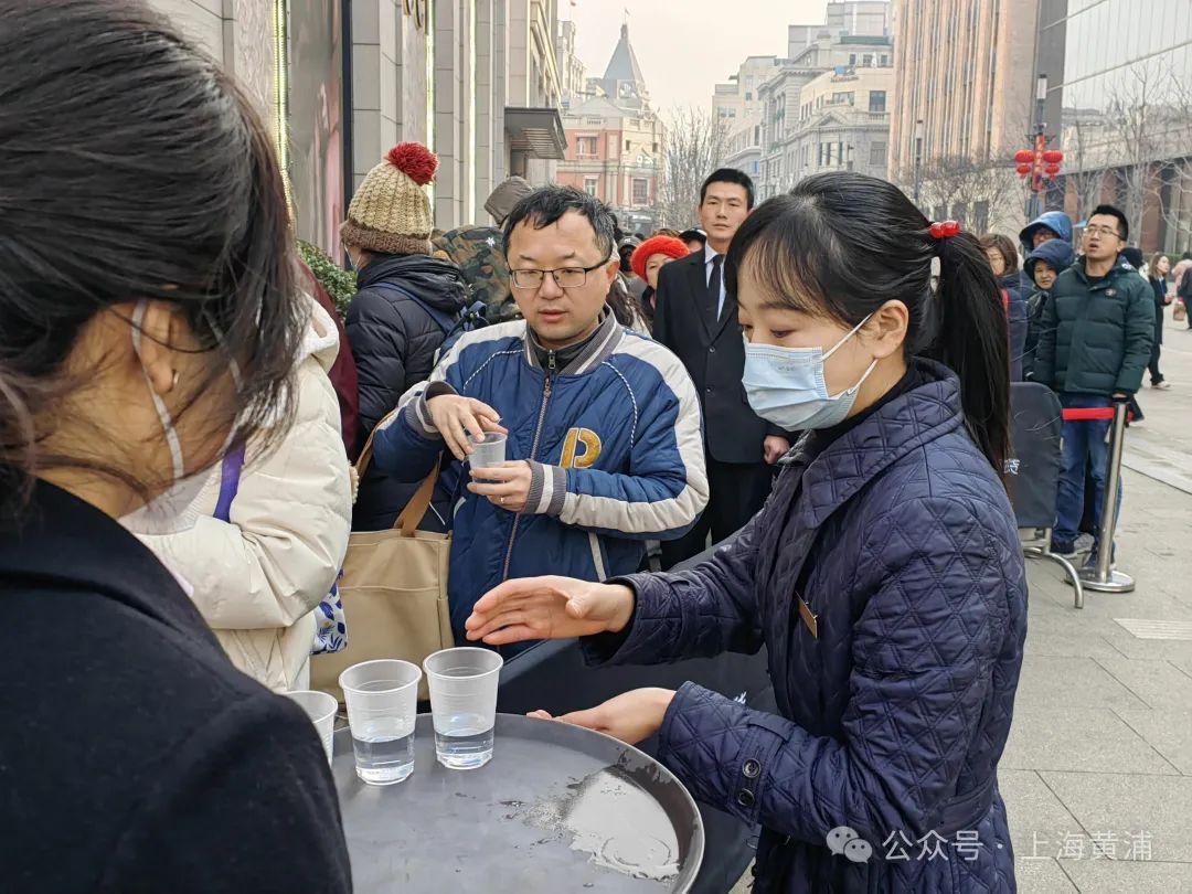 为抵御严寒的气温,缓解等待带来的疲劳,不少市民还穿上了厚厚的外衣,带上了躺椅、折叠座椅和保温杯。“现场还是很冷的,所以我把原本放在车里的睡衣又套在了羽绒服的外面。”一位排队市民这样说道。商场还贴心地为大家送上热茶,驱寒送暖。