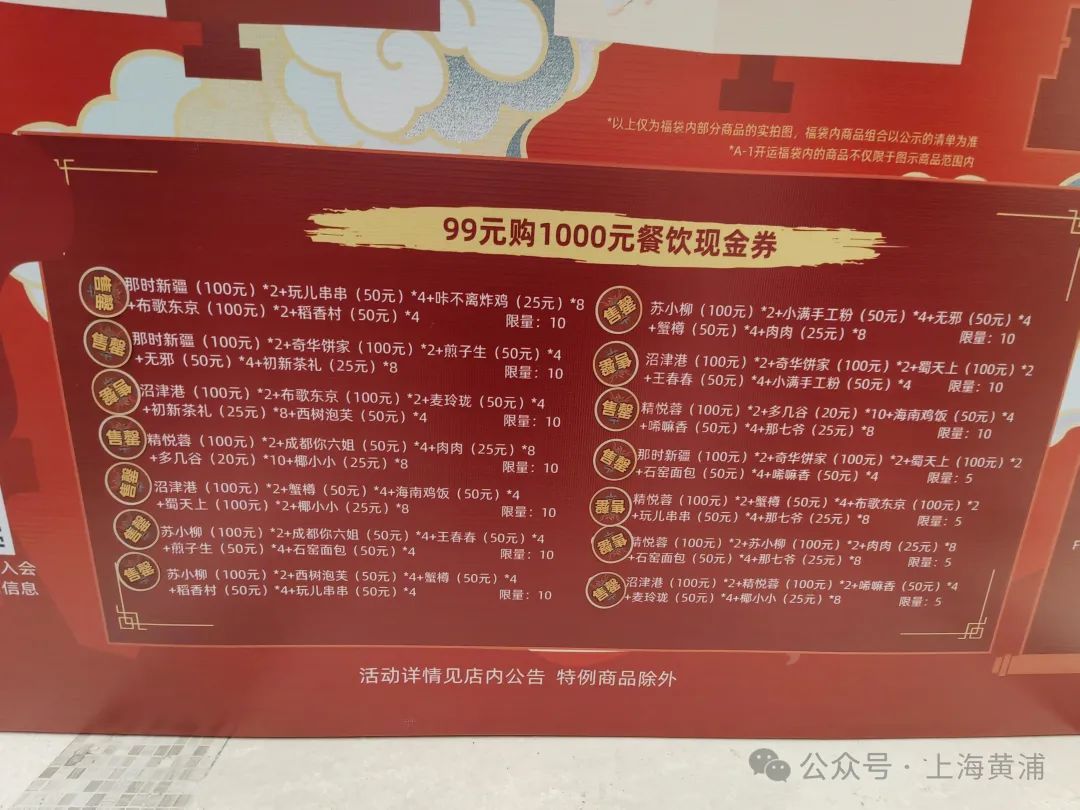 据悉,今年大丸百货推出中庭甄选福袋和品牌专柜福袋,最低1折起,总数近万个。其中,中庭甄选福袋分为百货、食品和99元购1000元餐饮券三大类;品牌专柜福袋则由商场内的各商户限量发售。