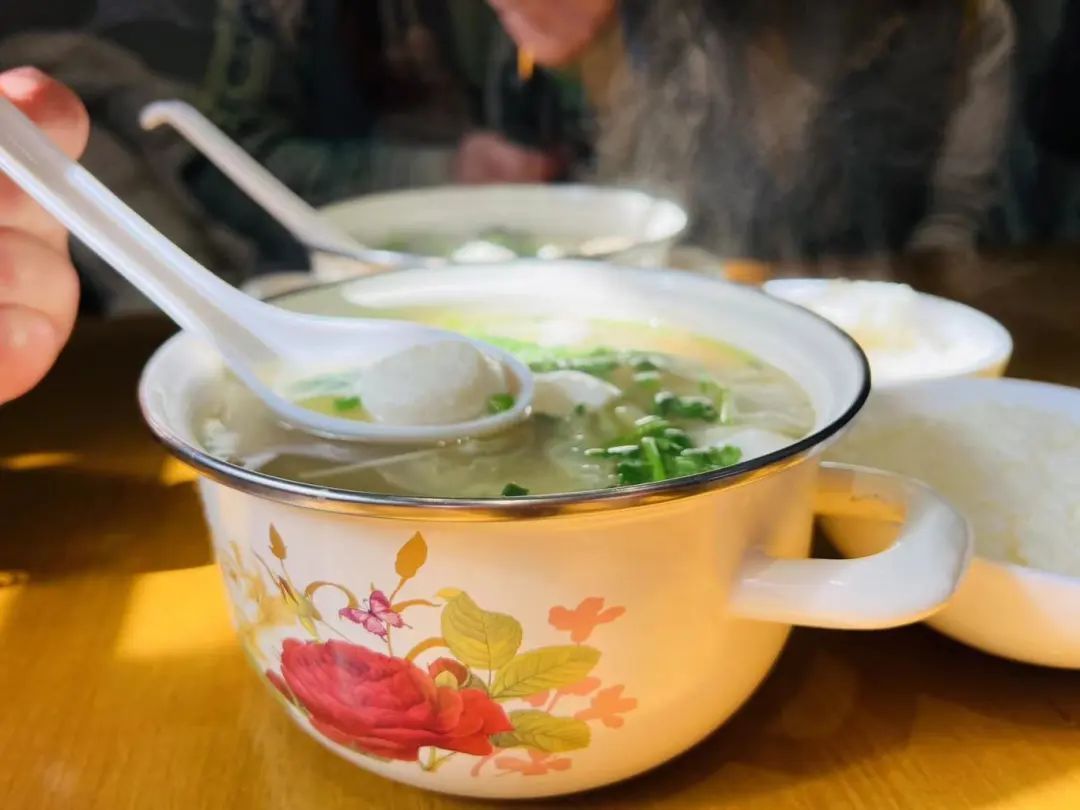 这几天,亭前街上一家“罗店鱼圆店”成了罗店古镇最热闹的地方。上午11点刚过,小小的店面已坐得满满当当,多是慕名而来的游客和回头客。