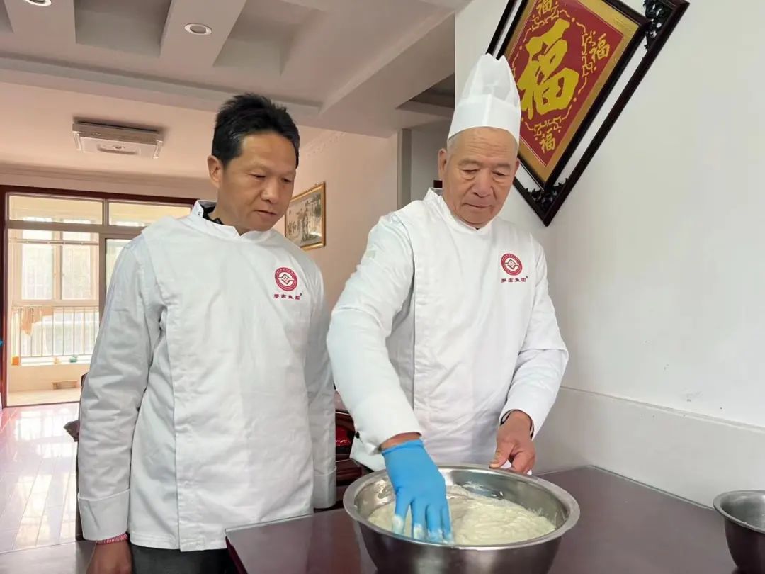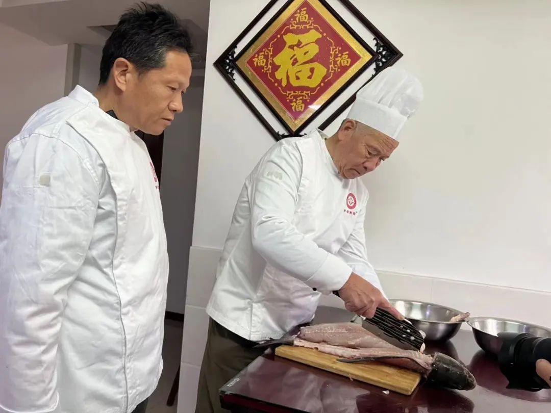 在店员来回张罗的时候,数公里之外,76岁的宝山非遗项目罗店鱼圆制作技艺代表性传承人周亮华也和儿子在家忙碌起来,他们要赶在春节赶制好邻里亲朋预定的罗店鱼圆。