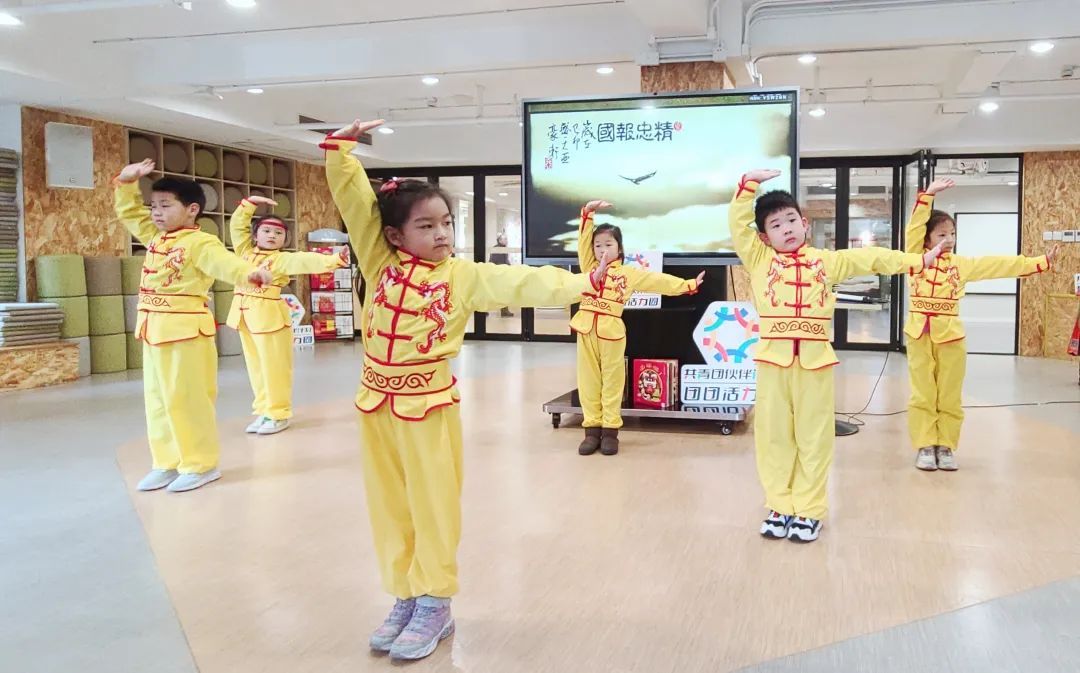 在漕溪新村幼儿园小朋友们气势十足的武术表演《精忠报国》中,联欢活动正式拉开大幕。舞台上,只见小朋友们个个身着劲装,表演动作干净利落。