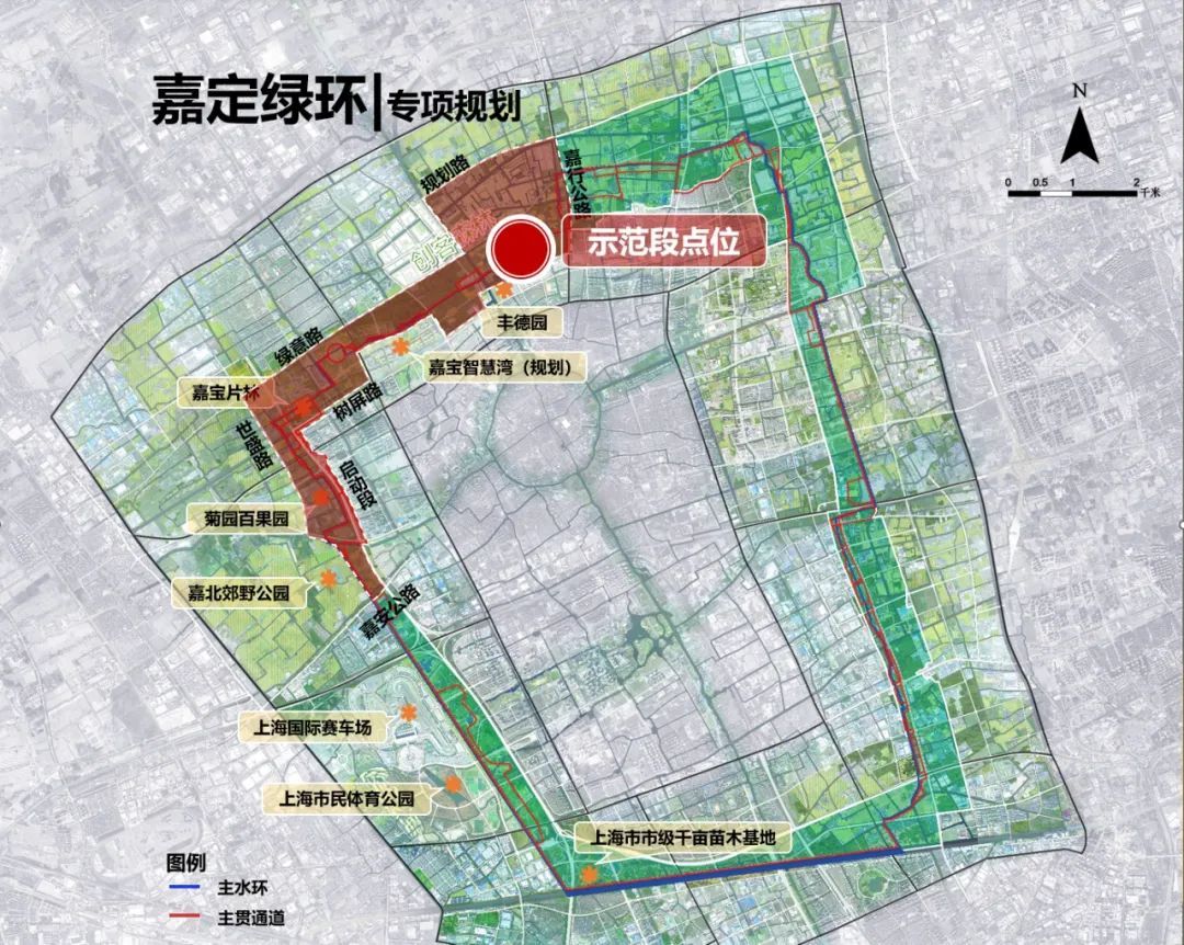 殷凯表示,整个先行启动段位于嘉定新城绿环的西北象限,自南向北由漳浦连接长浜,形成一条连续的主水环,串联起郊野公园、智慧秀林、创客森林三大空间单元,并向东延伸至嘉行公路。通过对现有道路的改建,以步行+骑行的方式,串联起虬桥村、现龙村等10个行政村,贯通长度约10公里,建设绿道约8.8公里。