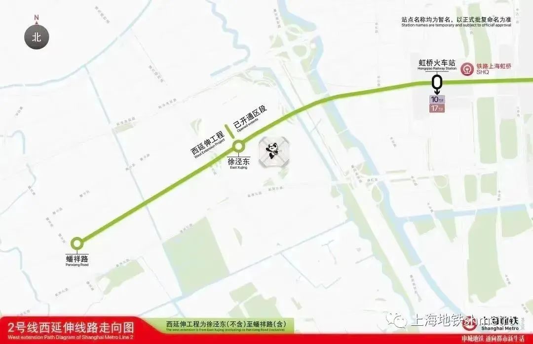 轨道交通2号线西延伸工程自2号线西延伸工程徐泾东站(不含)至蟠祥路站,线路长约1.7公里,全部为地下线,设车站1座,扩容既有主变电所。