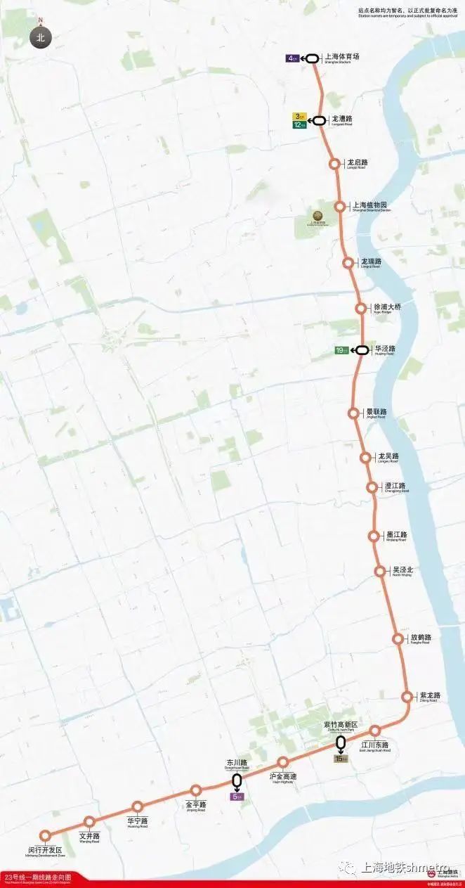 轨道交通23号线对加强老闵行至市区之间的轨道交通服务,带动浦西南部区域发展具有重要意义。23号线均为地下线,全长约28.6公里,共设22座车站,其中换乘站5座,串联了闵行开发区、紫竹高新区、吴泾转型地区、徐汇滨江地区等重要区域,途经闵行区和徐汇区两大行政区。届时紫竹科学园区将拥有15号线、23号线双轨道交通配置。