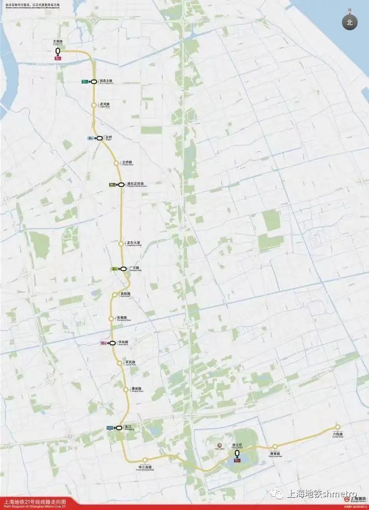 轨道交通21号线一期工程位于浦东新区范围内,起于上海国际旅游度假区东侧的六陈路站,终于浦东高行的东靖路站,途经川沙新镇、康桥镇、张江镇、金桥镇、高行镇,串联了国际旅游度假区、张江科学城、金桥出口加工区这三大功能区,及张江副中心、金桥副中心两个主城副中心。线路全长约28公里,均为地下线,共设18座车站。