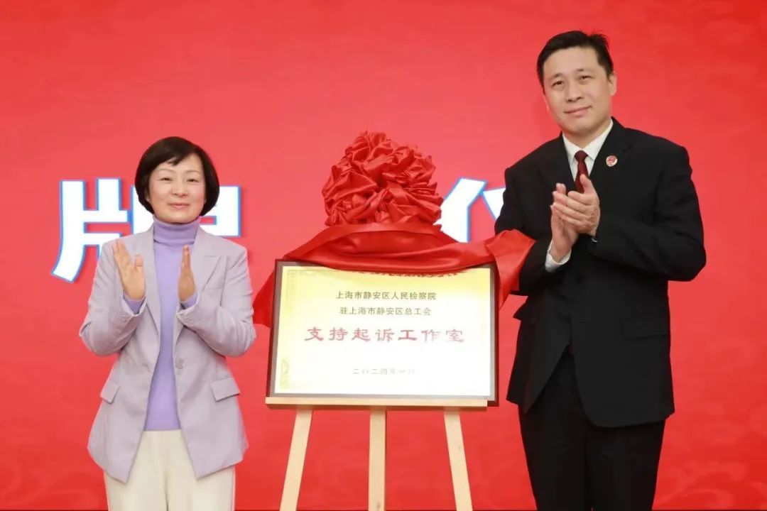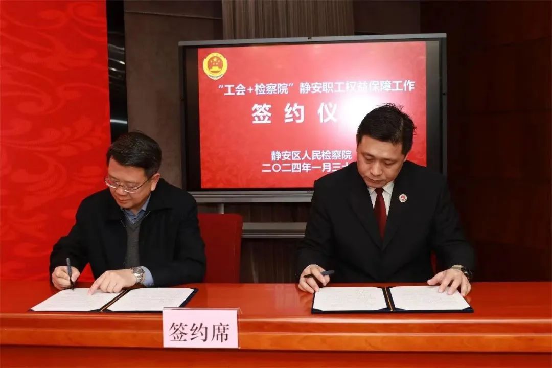 1月30日,静安区人民检察院与静安区总工会举行“工会+检察院”职工权益保障工作签约仪式暨检察院驻工会支持起诉工作室揭牌仪式,双方携手共建区域和谐稳定劳动关系,助力区域经济高质量发展。