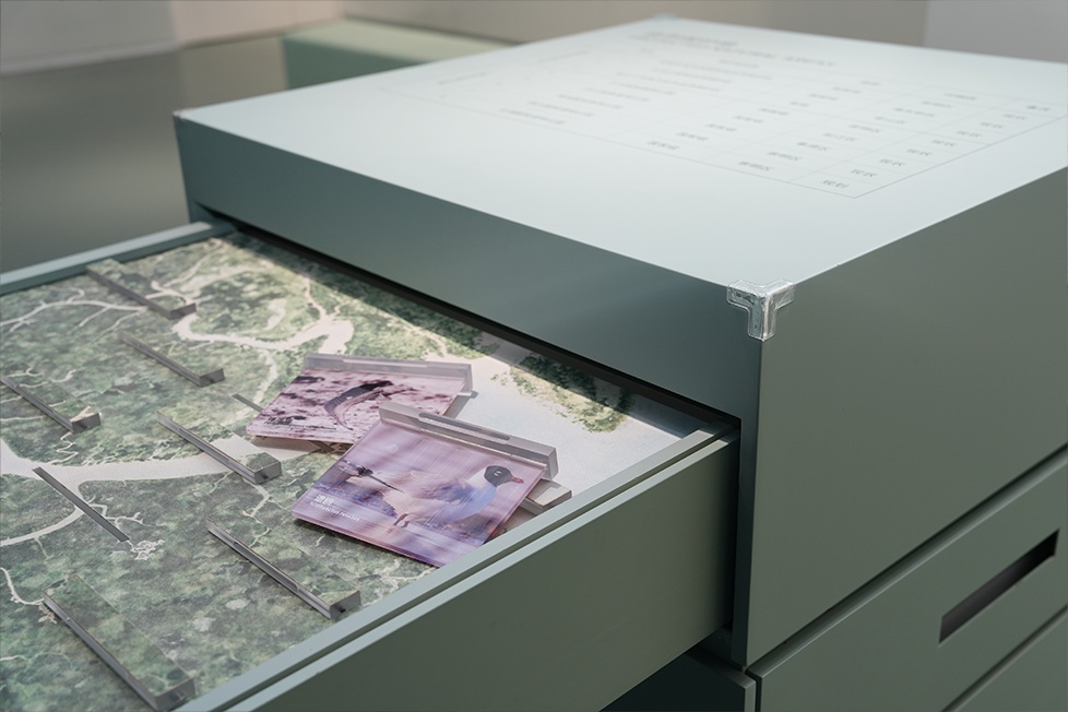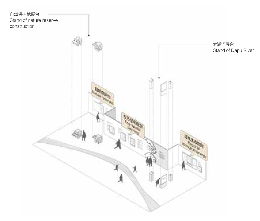 自然保护地展台内的设计结合自然保护地的影像图,不规则地植入相应生物物种的信息标签,让宏观而抽象的规划知识“唾手可得”。