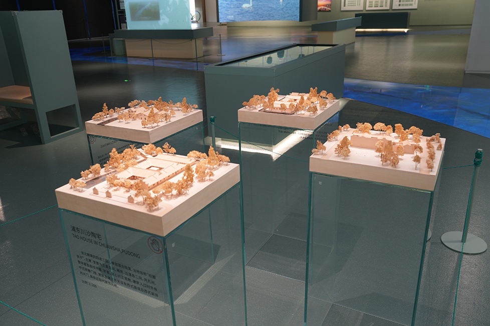 乡村住宅模型采用“切片”的叙述方式,选取上海典型的乡村建筑——崇明倪葆生宅、练塘前进街民宅、浦东陶长青宅、娄塘墩谊堂进行呈现,营造江南乡村建筑精巧、温暖、自然的空间氛围。