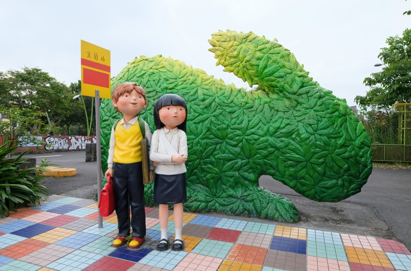 被昵称为“几米车站”的宜兰车站,是北台湾最“可爱”的车站!台湾知名绘本作家几米的创作在宜兰车站重现,让原本只是一幢红砖建筑的宜兰车站,焕然一新,充满童趣。宜兰车站本体被打造成奇幻丛林,其中最吸睛莫过于屋顶大大的微笑长颈鹿。