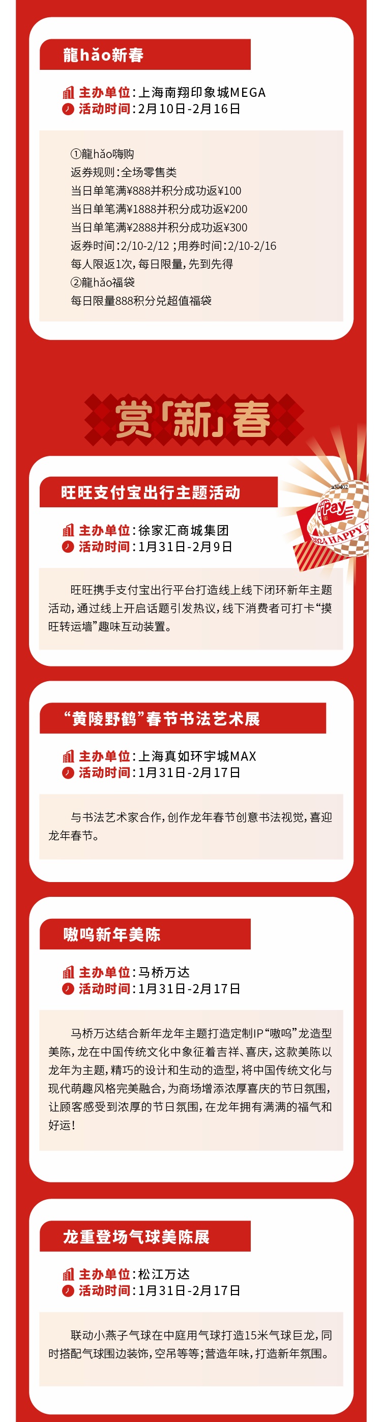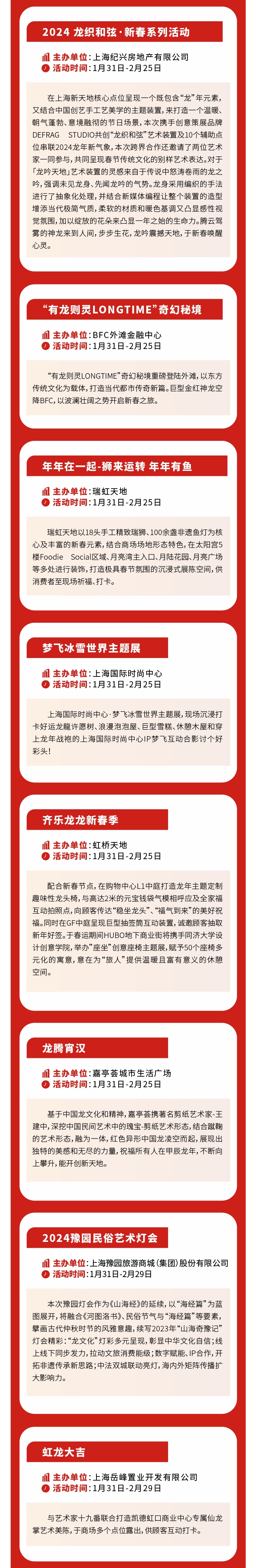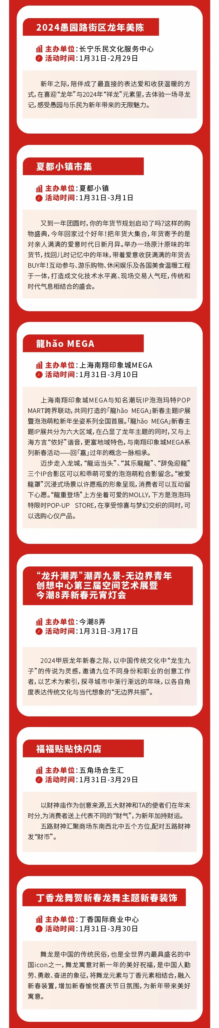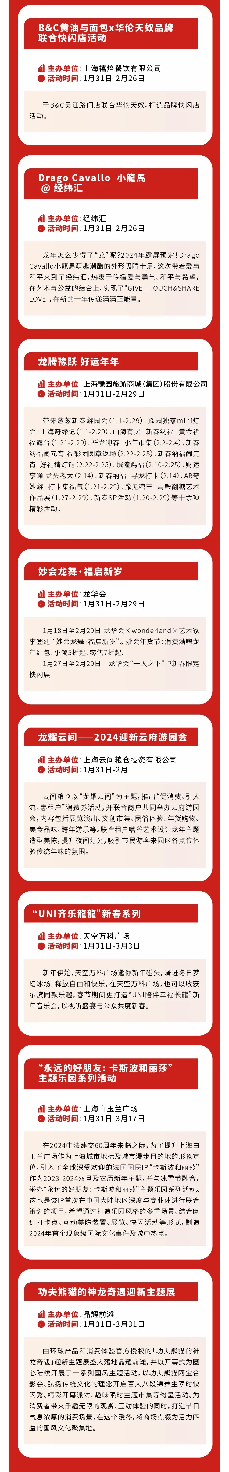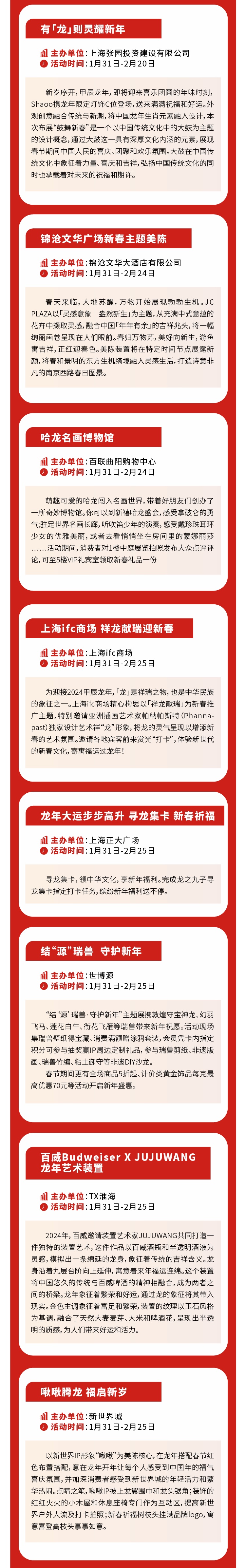 2024“跨年迎新购物季”持续进行中~龙年新春即将来临,结合“龙舞上海 春照商圈”主题,市商务委优选了四百余项特色活动,主打86项重点活动,一起来看看主要亮点↓