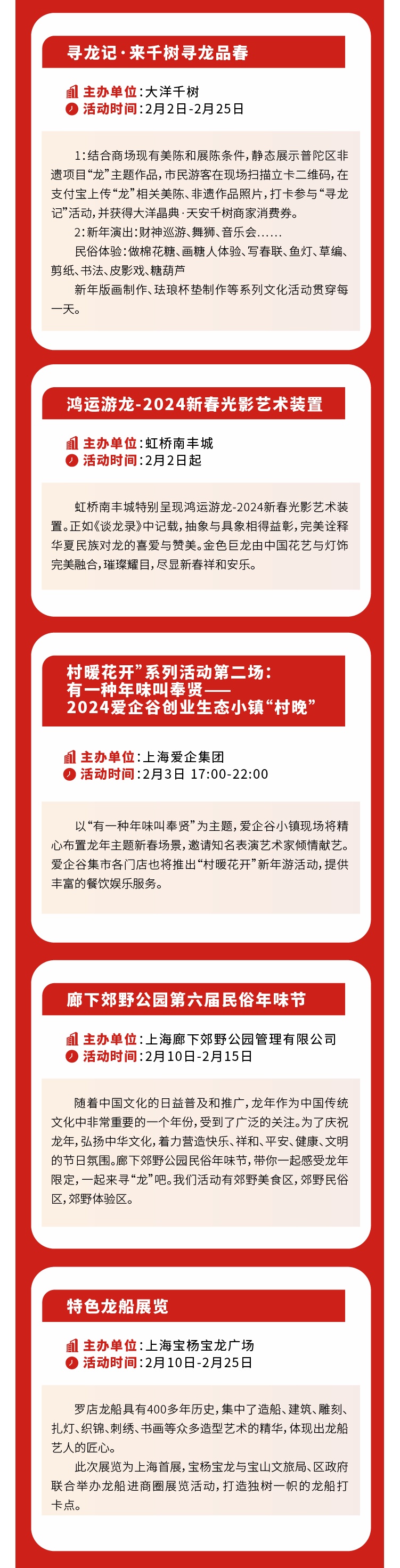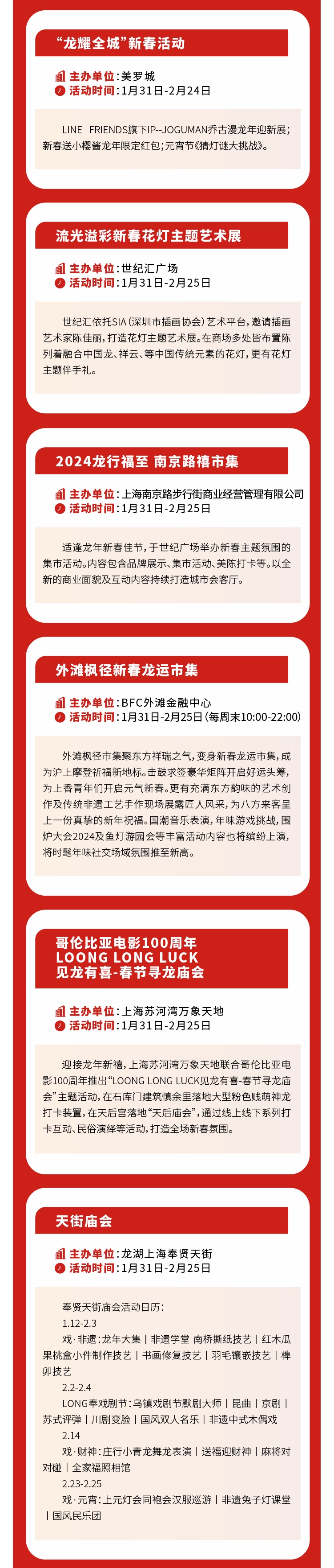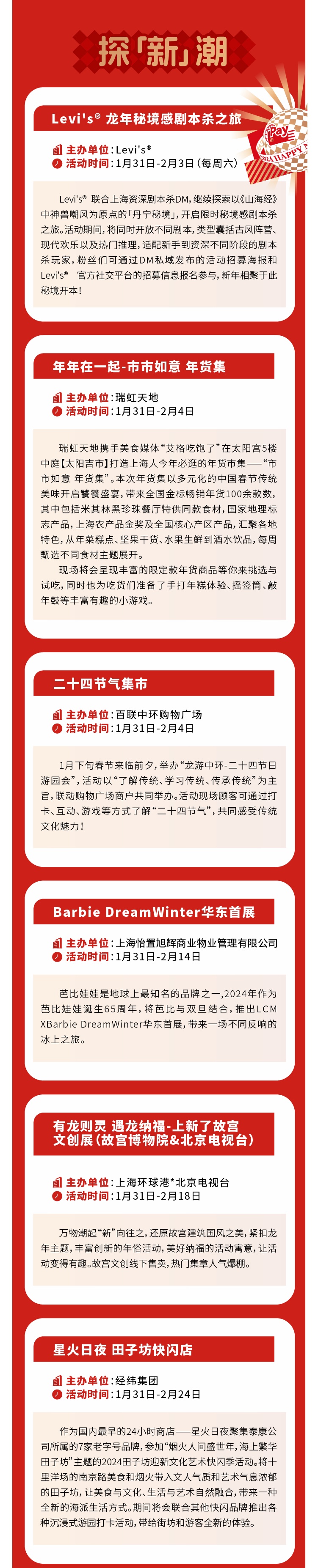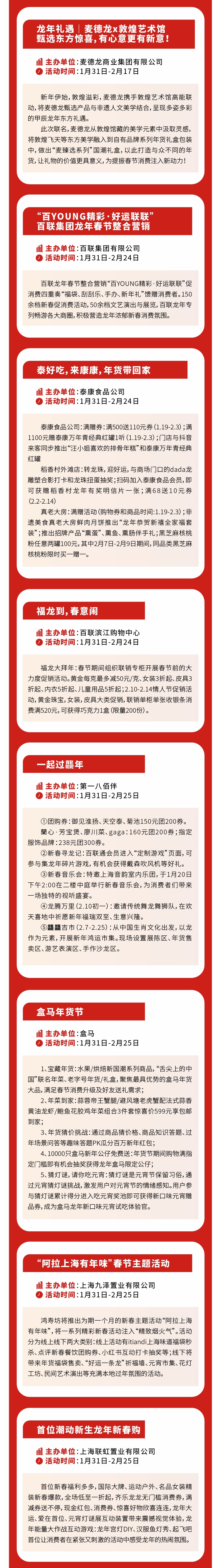 2024“跨年迎新购物季”持续进行中~龙年新春即将来临,结合“龙舞上海 春照商圈”主题,市商务委优选了四百余项特色活动,主打86项重点活动,一起来看看主要亮点↓