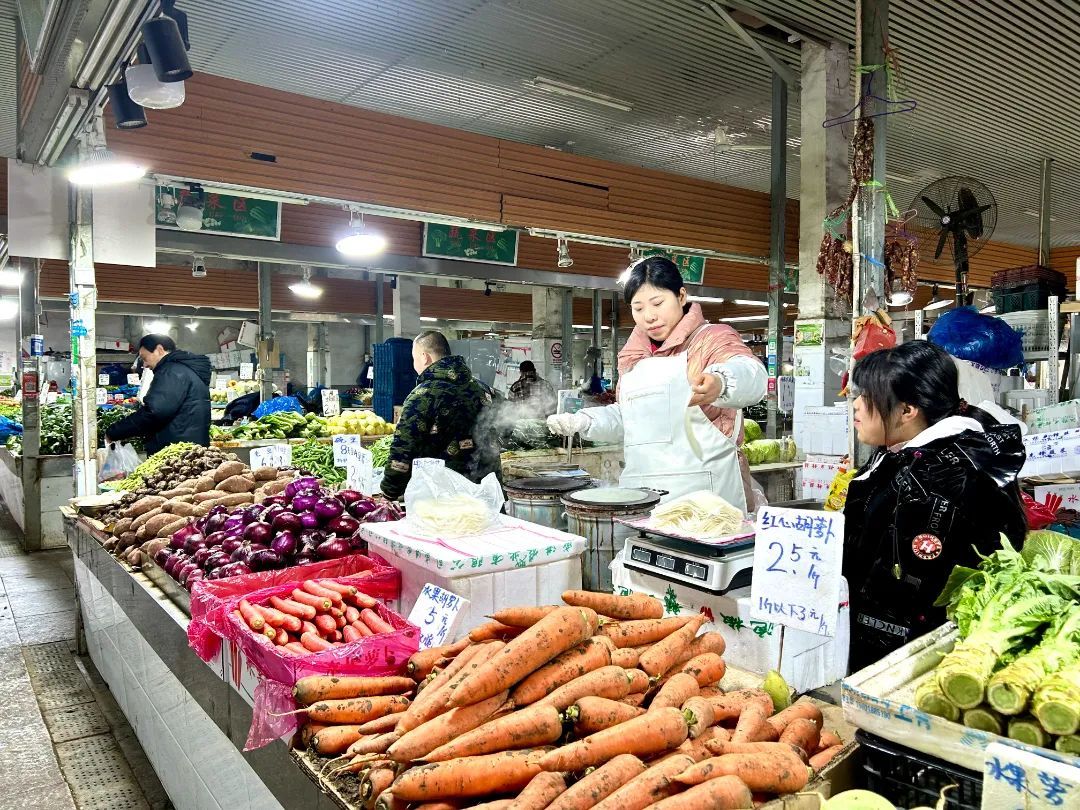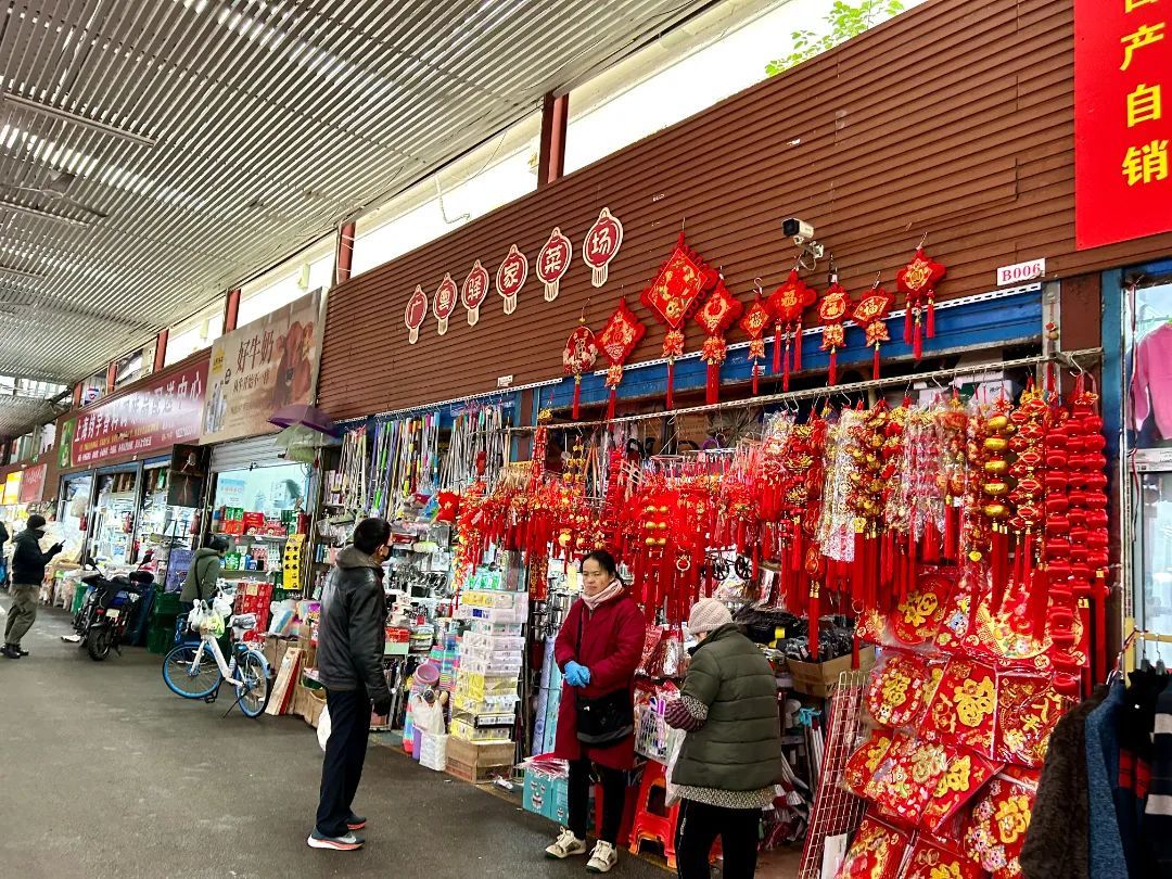 看到春联就知道春节临近,菜场五金店把春联、福字、小灯笼这些烘托气氛小物件摆在最显眼的地方,春节氛围一下子拉满了。“买了福字和寓意好的春联,希望来年的生活也平平安安、顺顺利利。”李阿姨说道。