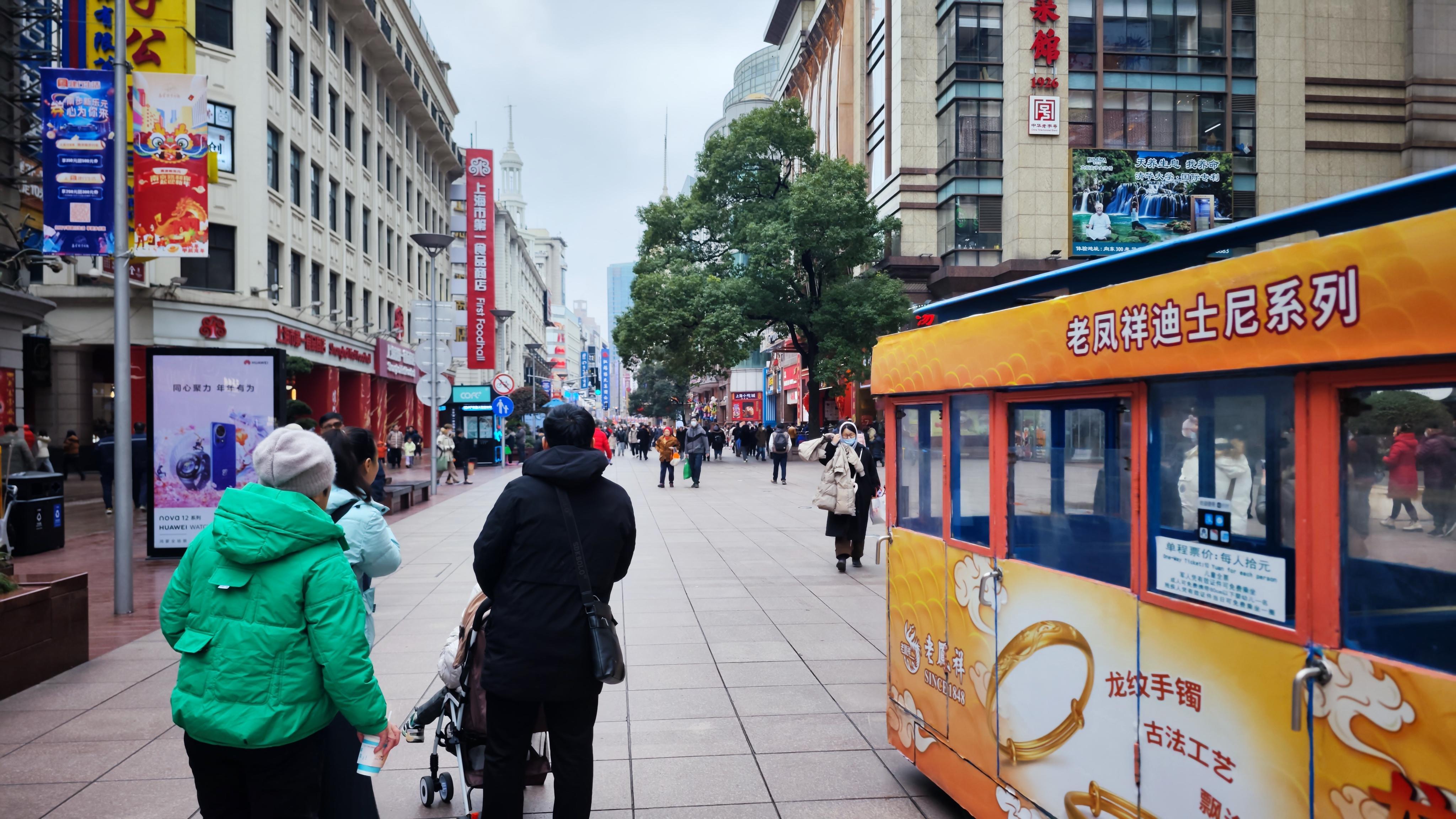 湿冷魔法继续攻击申城,虽说今天大部分时候没有滴滴哒哒的雨水干扰,但带来的阴冷感觉却一点没有减少。阴霾的天空下,南京路步行街上往来的行人依旧不少,新年临近,外出采购也是必要的工作,不同的是,走在街头,人们裹紧外套,戴起帽子,看上去多少有些行色匆匆。