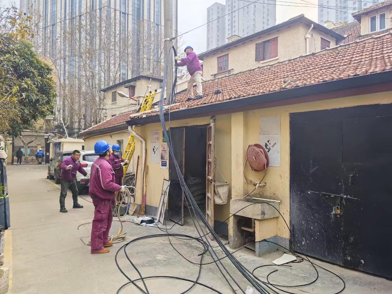 由于房龄老,限制多,给施工带来不少难度。经讨论,决定沿用原来的方式,采用屋顶进线。施工中,使用了更安全稳定的水泥电线杆替代原本的木制电线杆,并将每户居民家中的电表外移固定在统一的电表箱内,同时,拆除原本屋面上的木电线杆并由物业修复屋面。